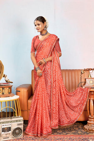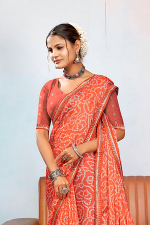 916003 Rajasthani Bandhani with Border - Orange