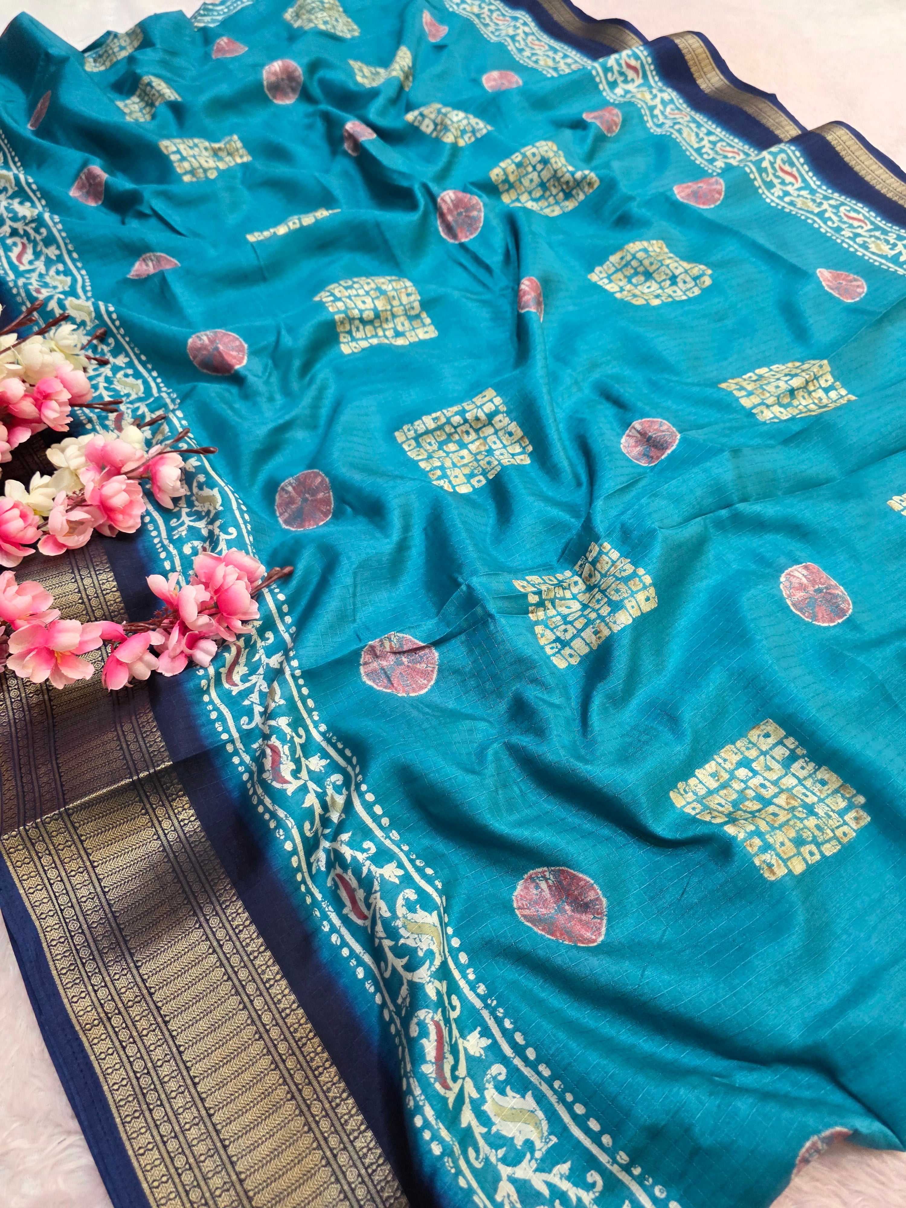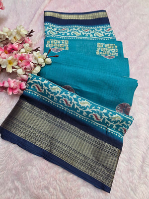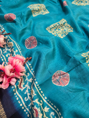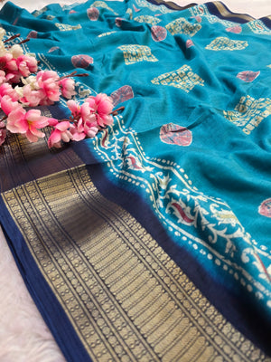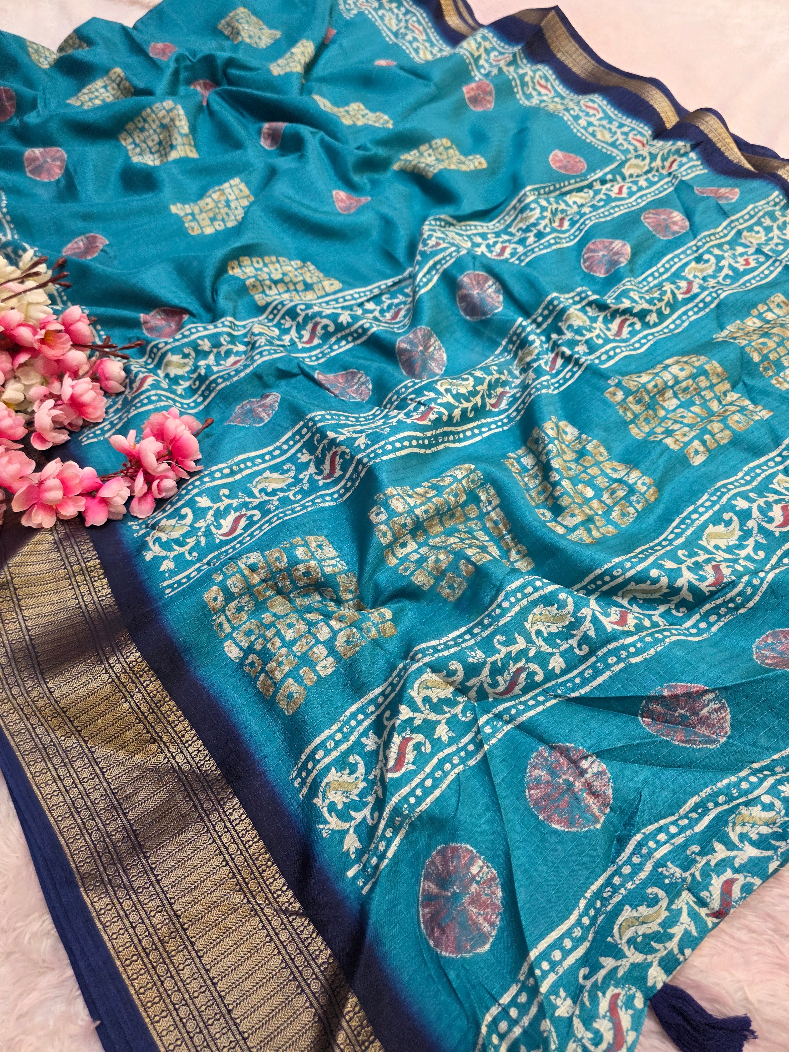 918002 Soft Art Silk Saree with Batik Print - Sky Blue