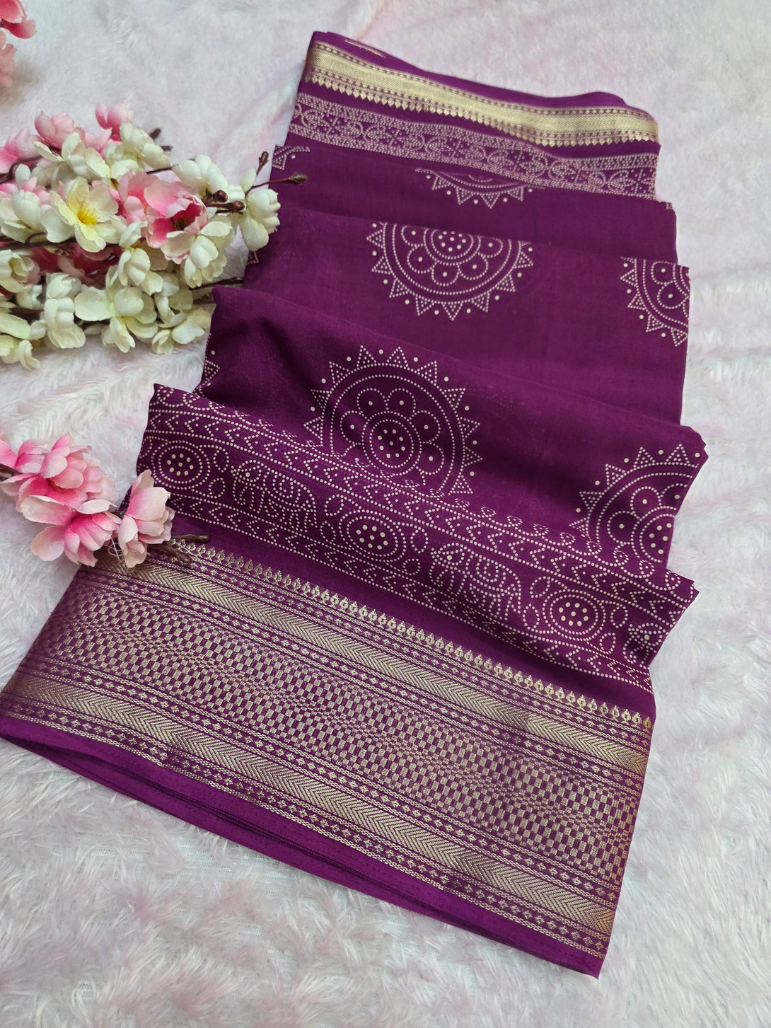 Add charm to your wardrobe with this Designer Georgette Silk Flower Printed Saree, crafted with a rich zari weaving border for an elegant touch. Made from lightweight georgette silk, this saree drapes beautifully and feels soft on the skin.