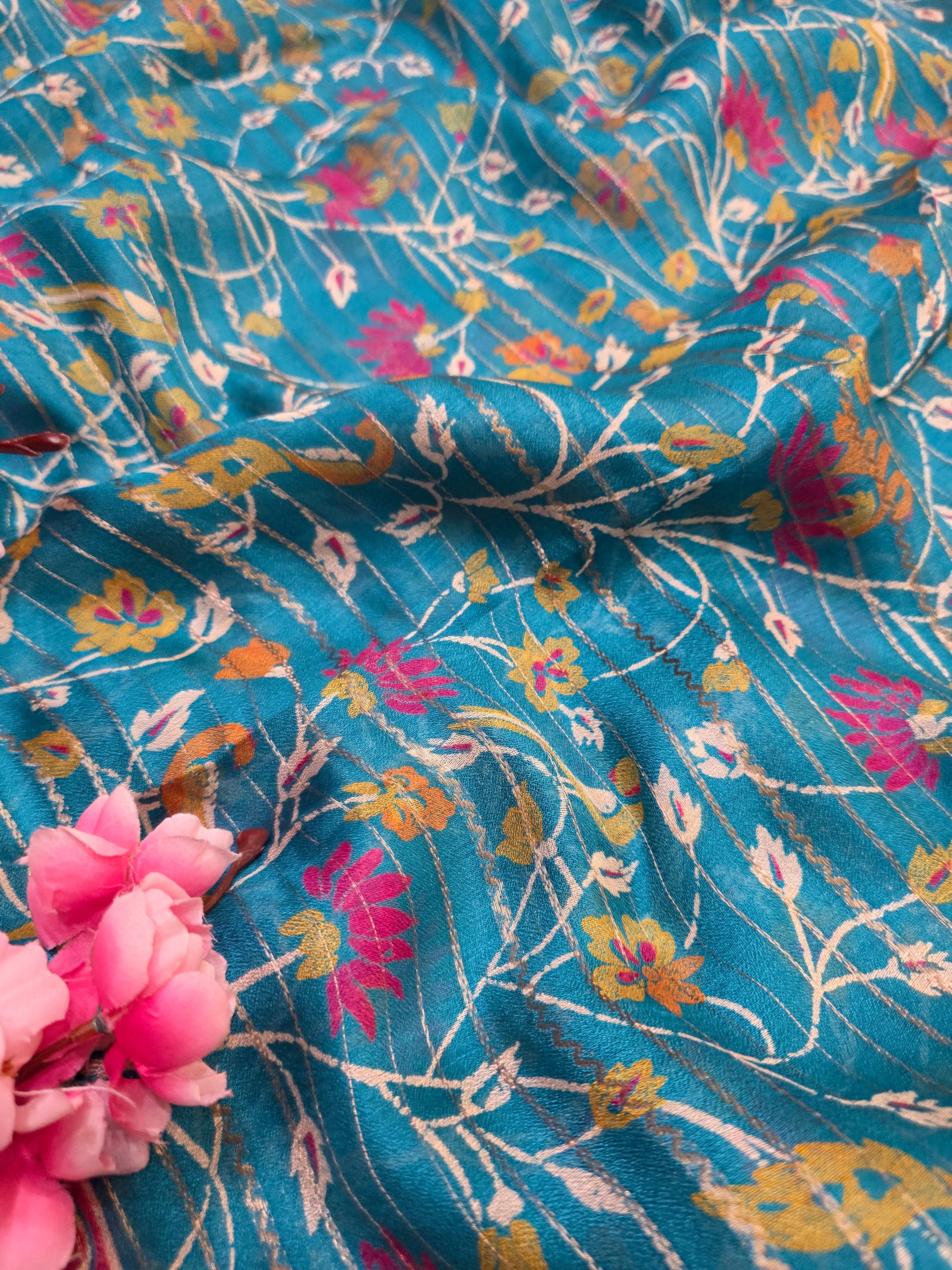 Home 918004 Designer Georgette Silk Flower Printed Saree with Zari Weaving Border - Sky Blue