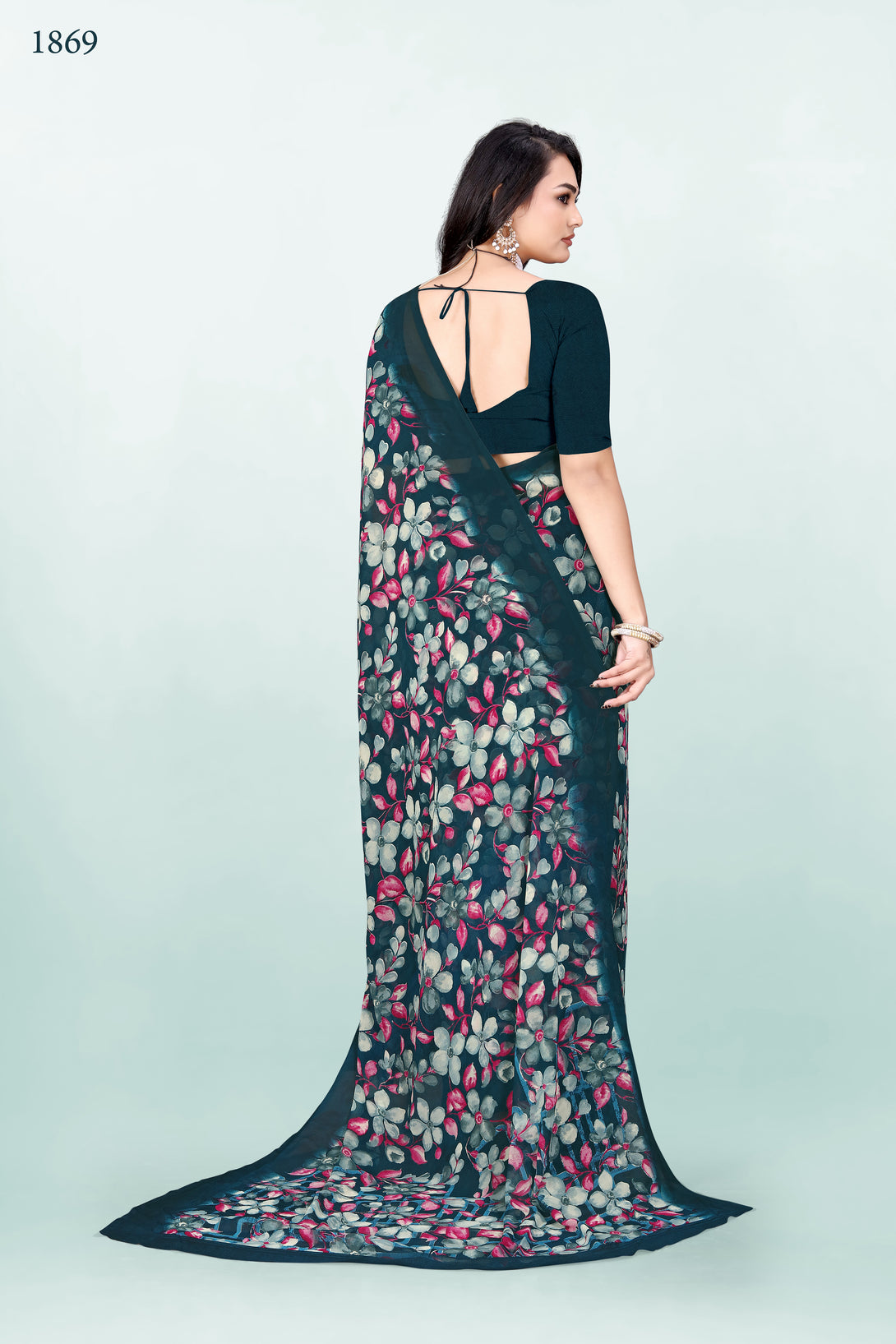 Exclusive Printed Branded Saree It has very high quality fabric with digital / flower print on all over saree very soft and rich in feel.