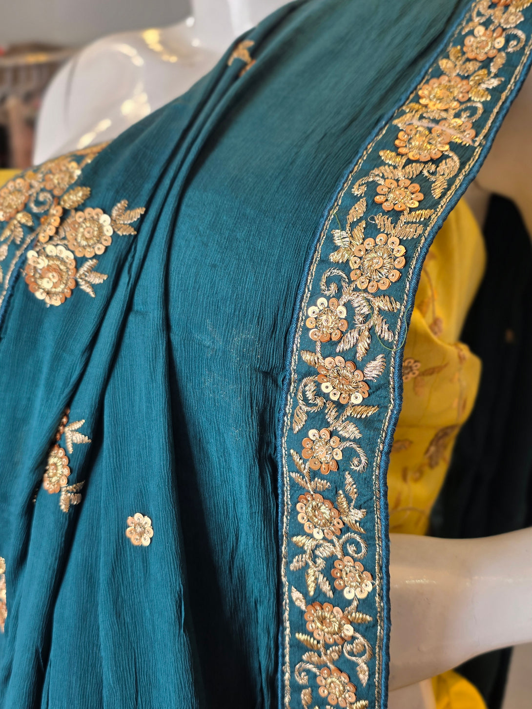 • Blouse: 1 Mtr fabric with heavy sequin work (separate)