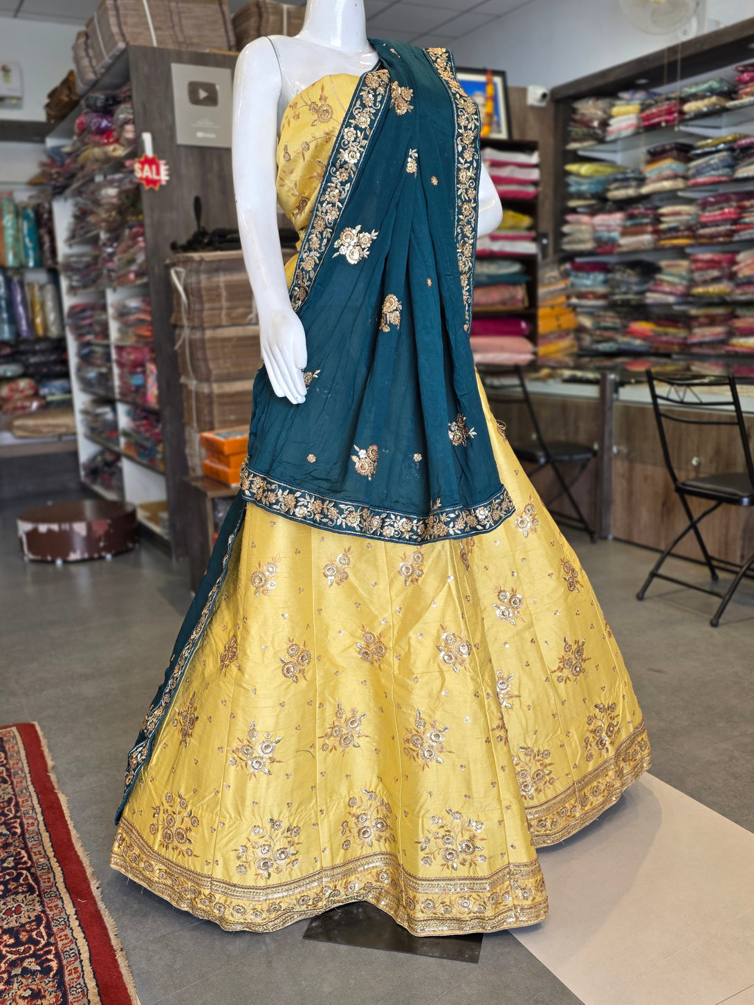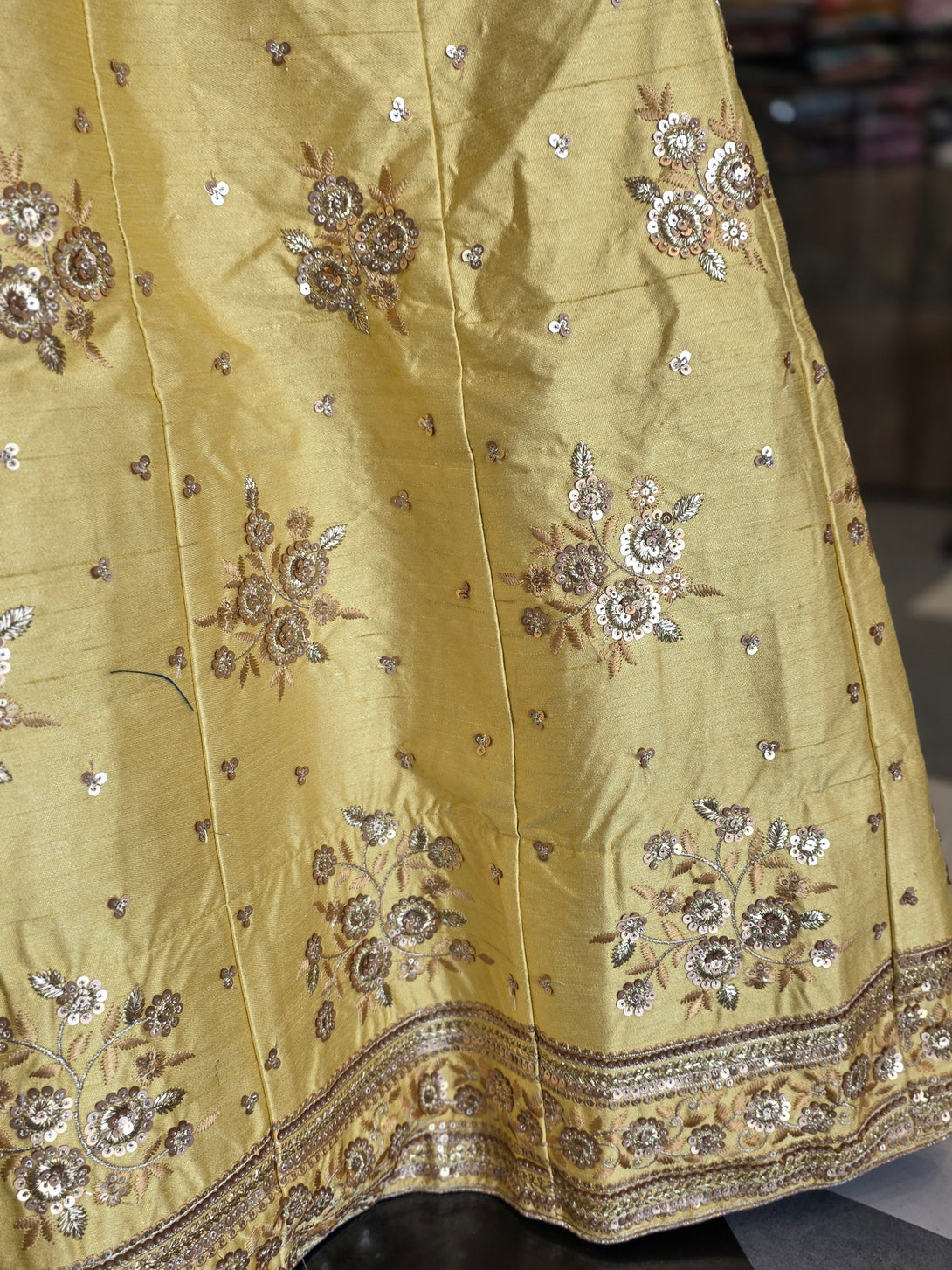 930005 Raw Silk Unstitched Lehenga with Heavy Sequin Work Blouse & Chinon Silk Dupatta