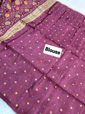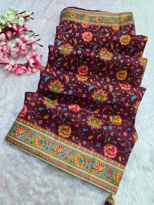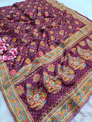 931005 Royal Kashmiri Pashmina Work Pure Soft Dola Silk Saree with Heavy Zari Blouse - Wine