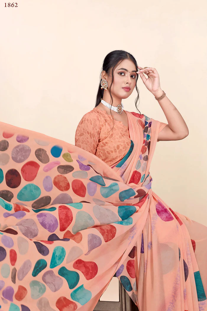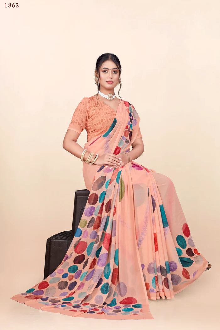 936002 Premium Digital Printed Georgette Crepe Saree