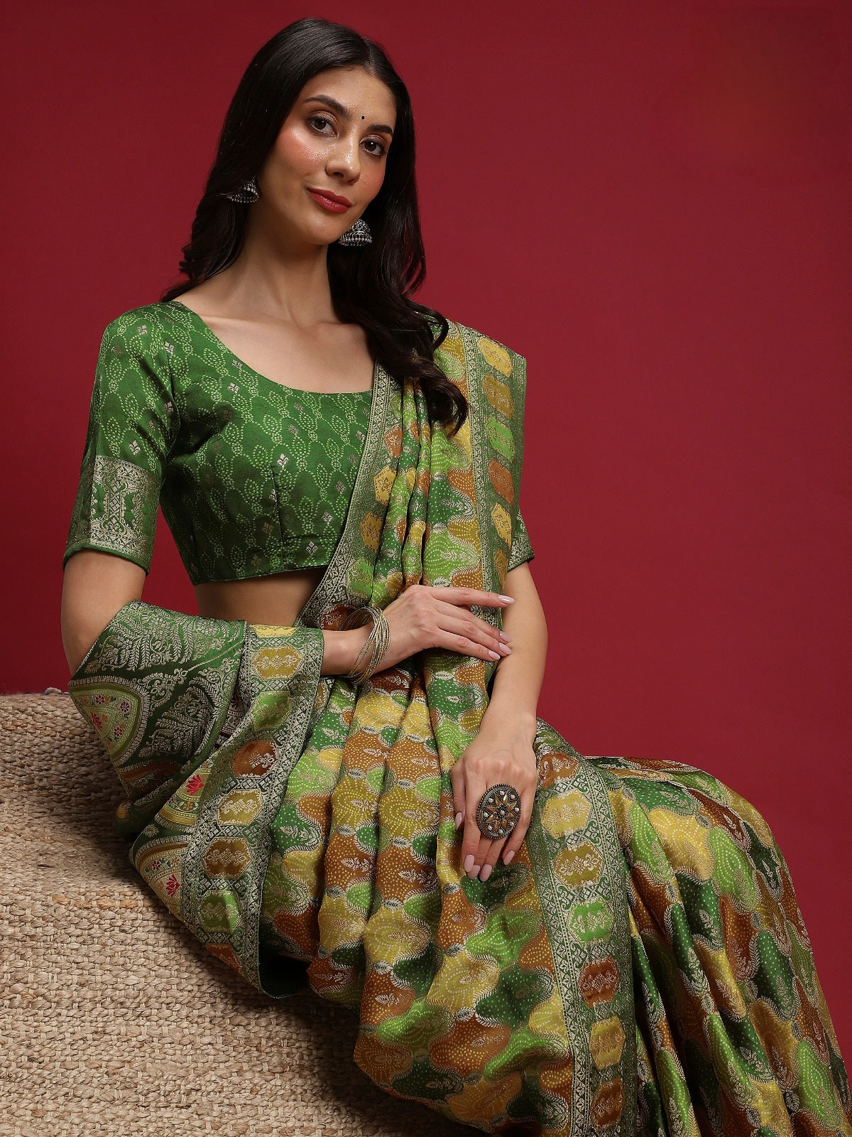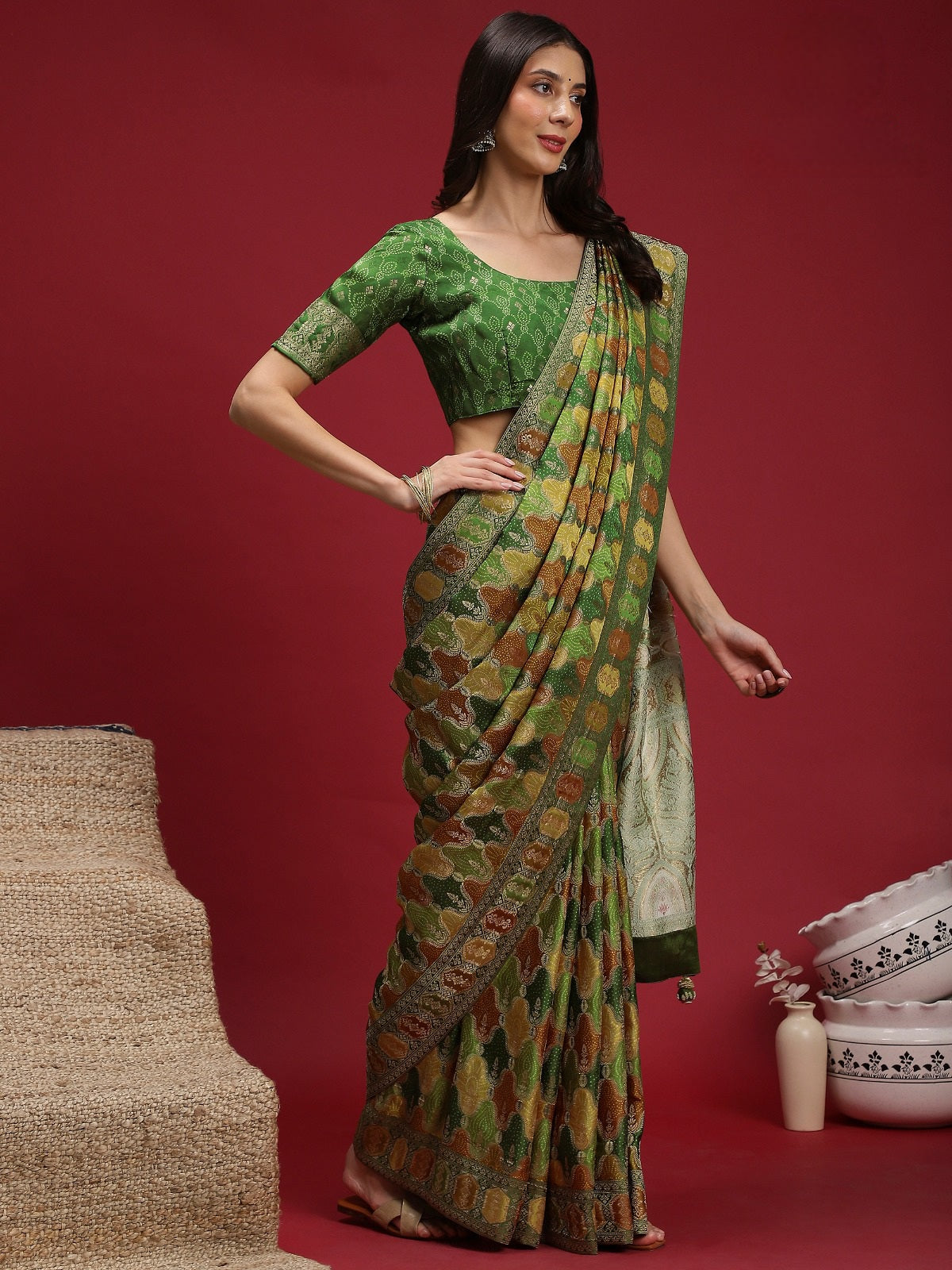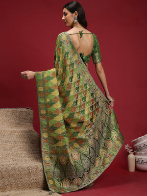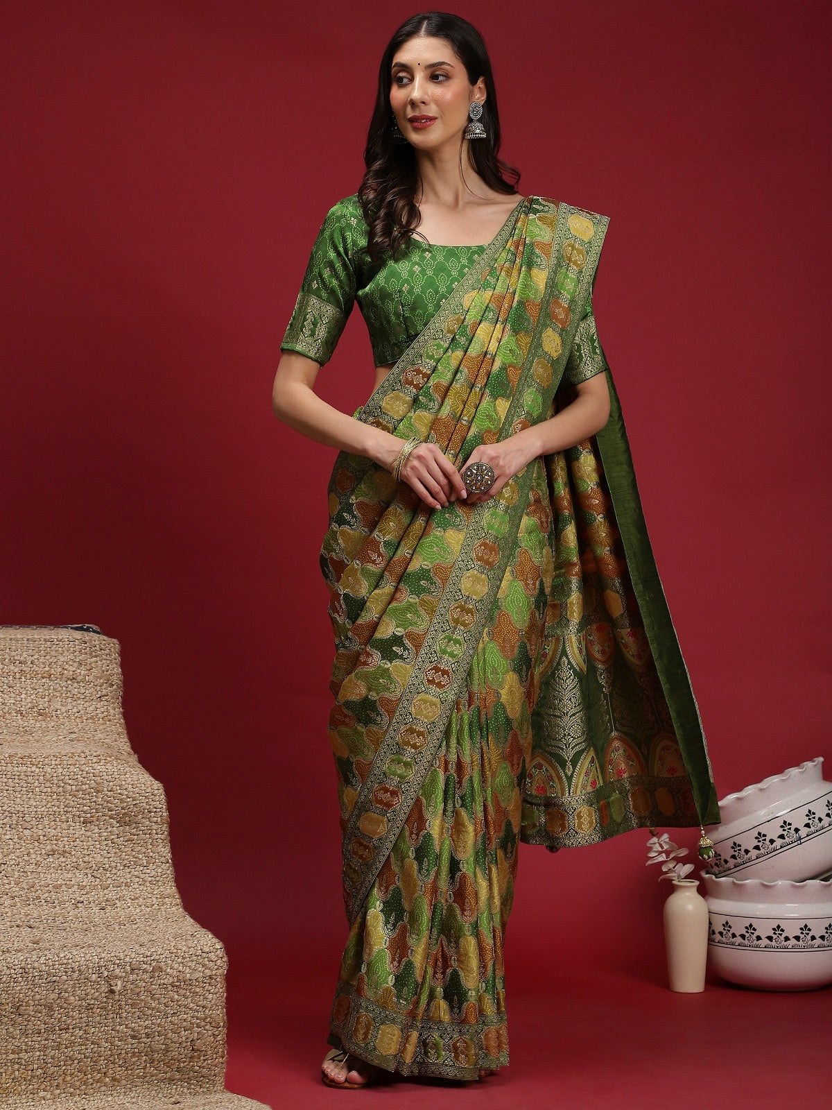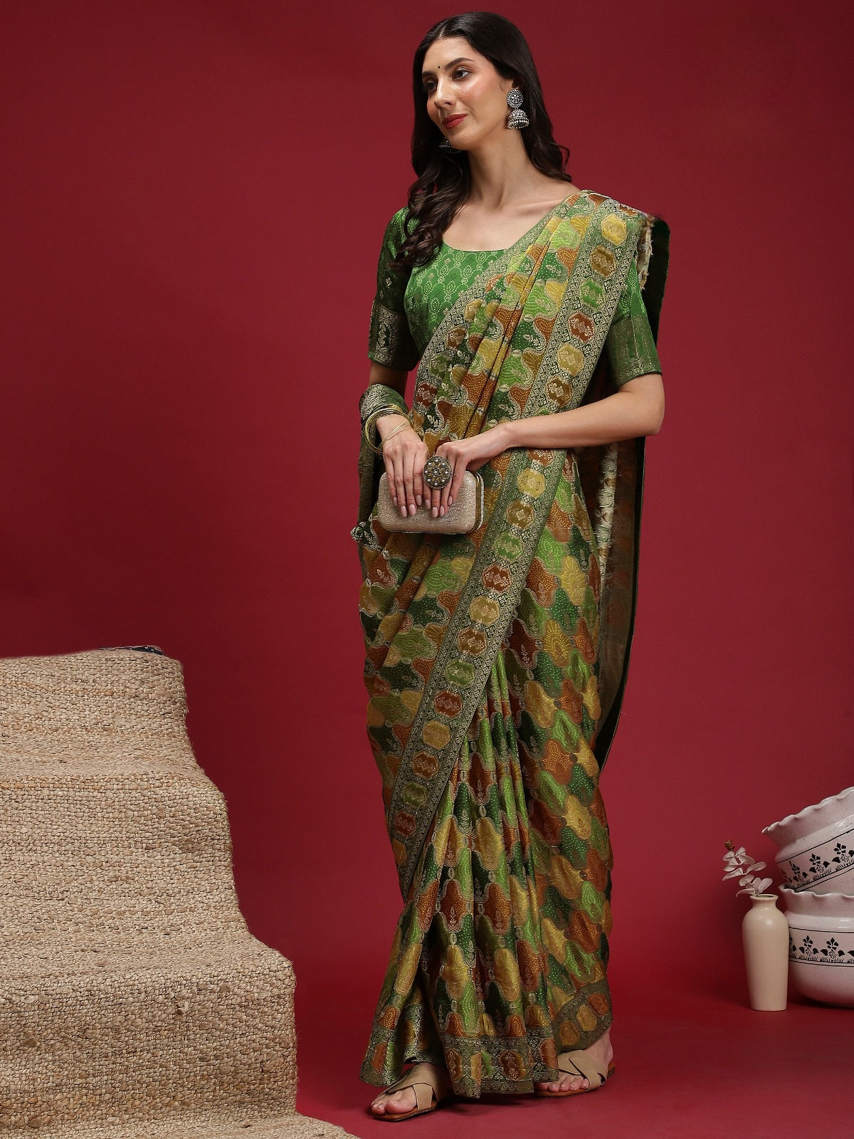 938004 Royal Kashmiri Pashmina Silk Mehandi Green Saree with Heavy Blouse