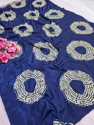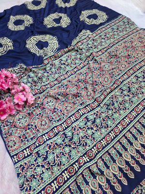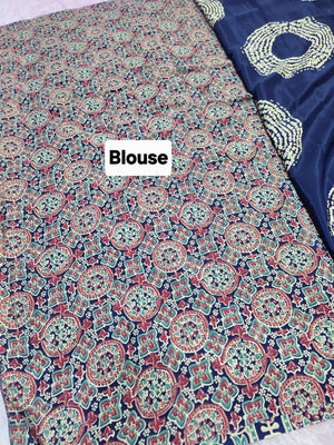 939002 Traditional Ajrakh Print with Shibori Satin Silk Saree - Blue