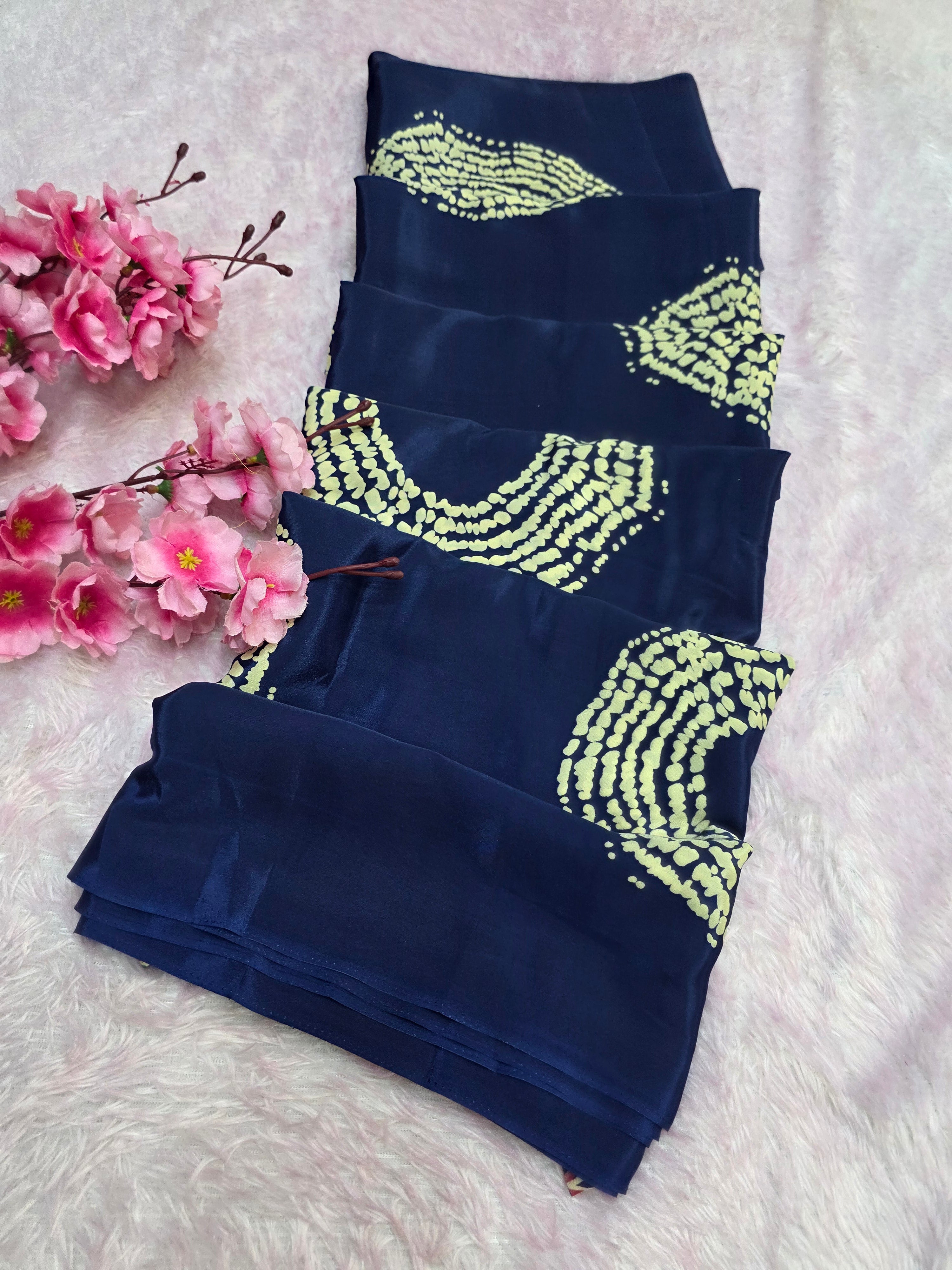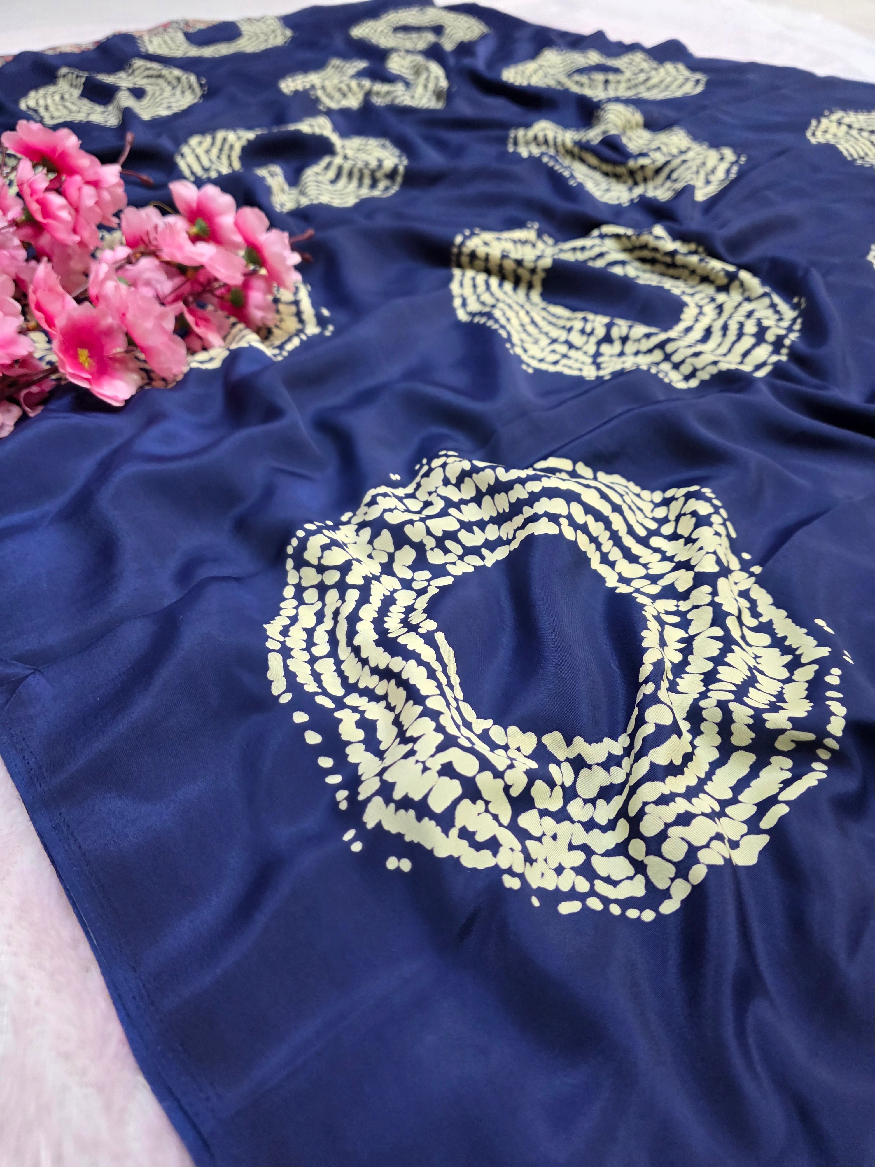Elevate your ethnic look with this Ajrakh Print Satin Silk Saree – a blend of tradition and luxury. Made from premium satin silk, it features authentic Ajrakh block prints in rich, timeless patterns.