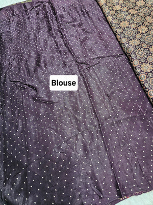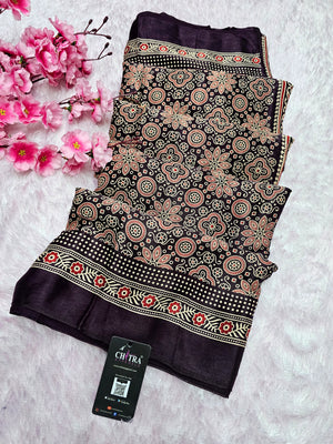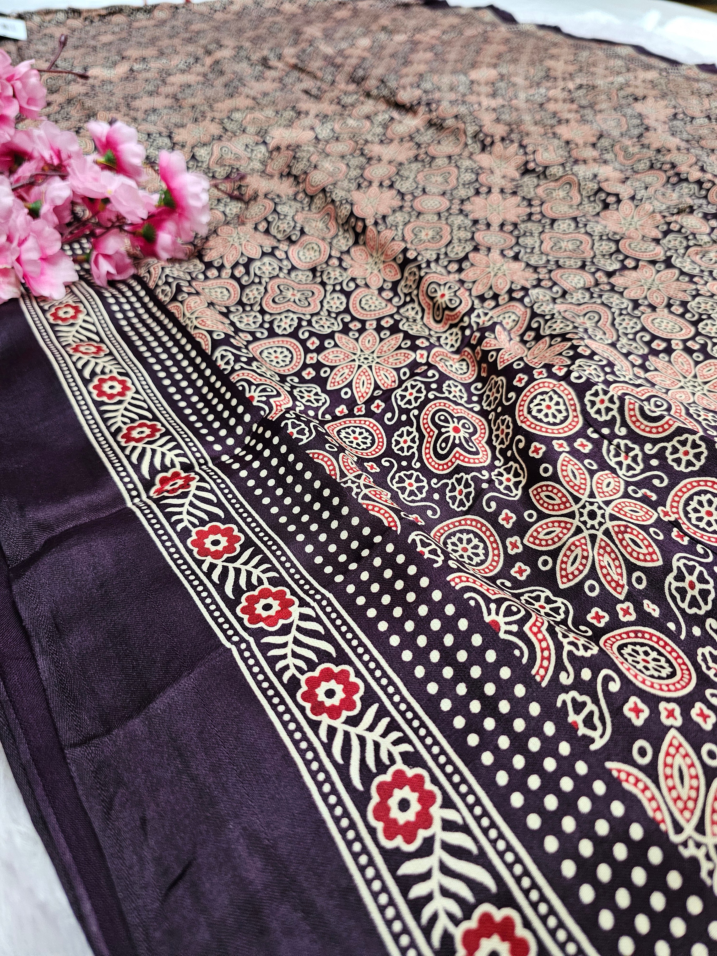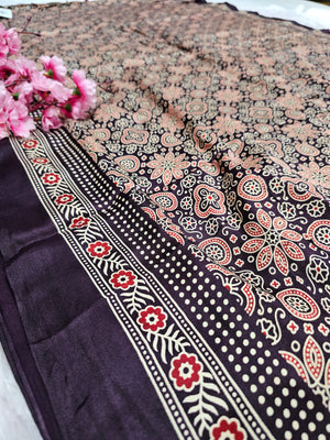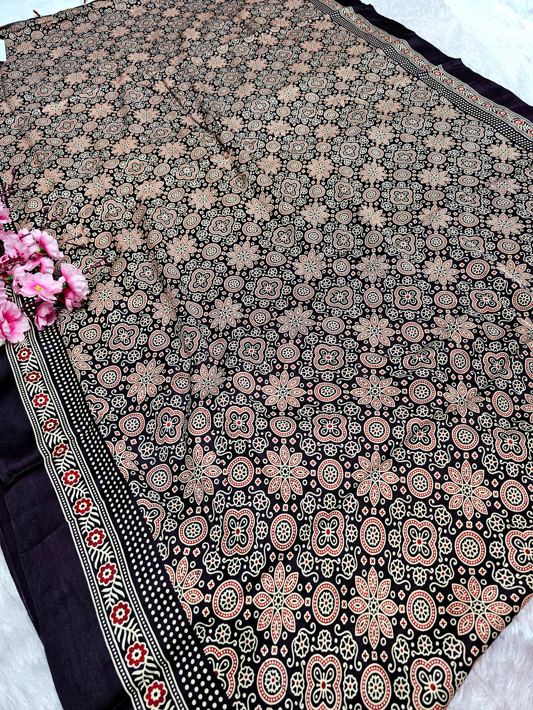 940002 Traditional Ajrakh Print Modal Silk Saree with Designer Zari Pallu