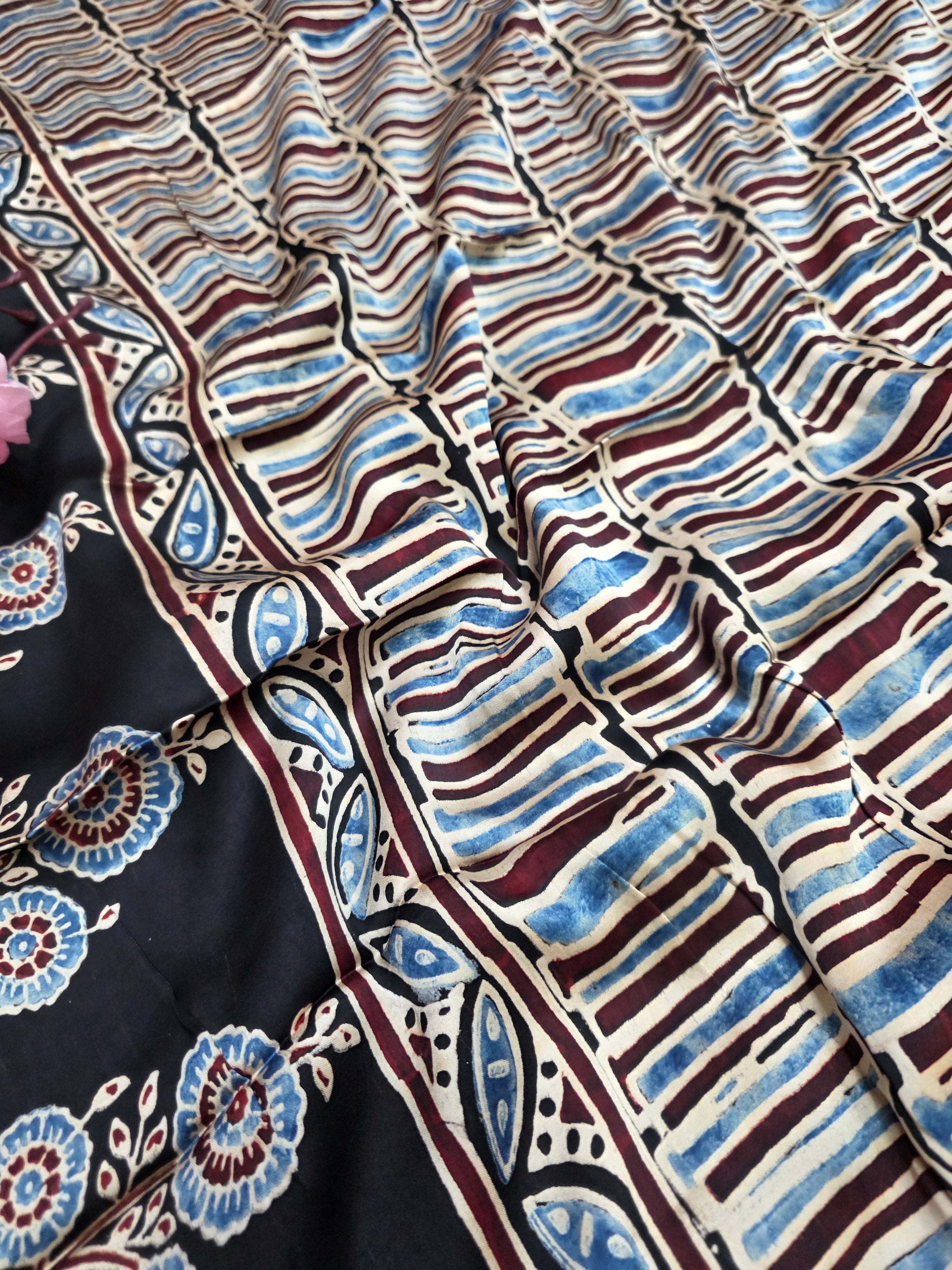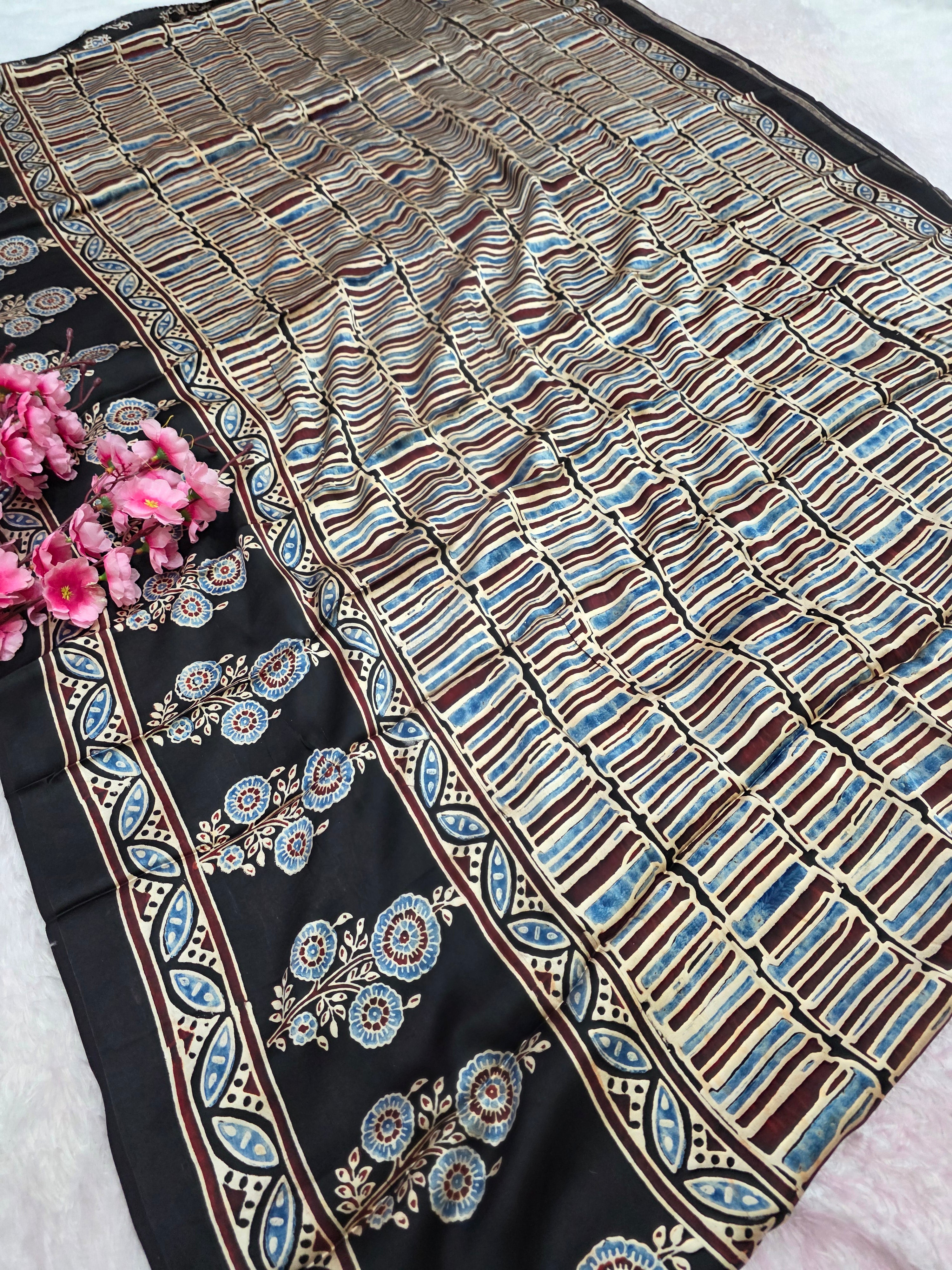 941003 Authentic Ajrakh Print Pure Modal Silk Saree