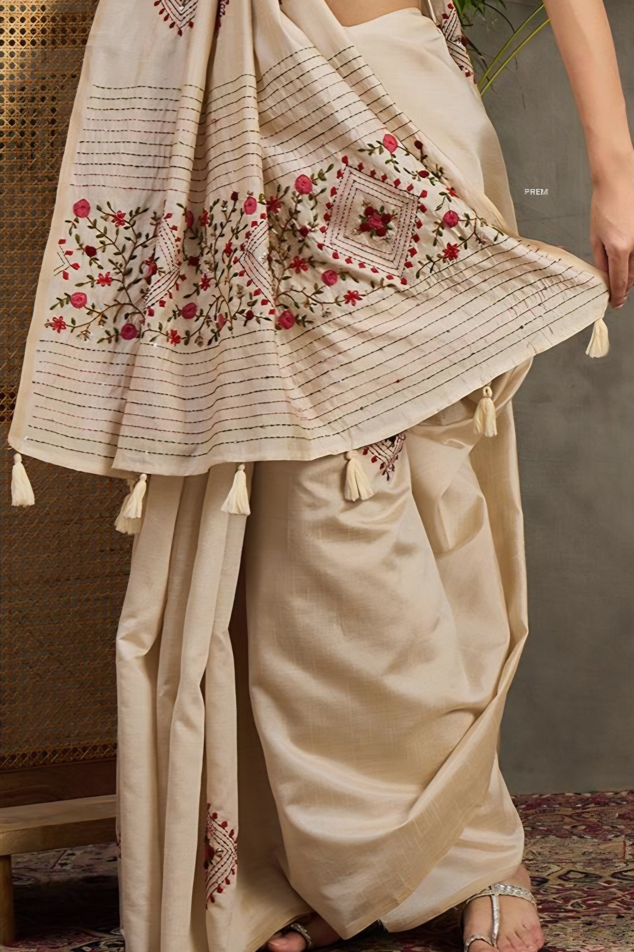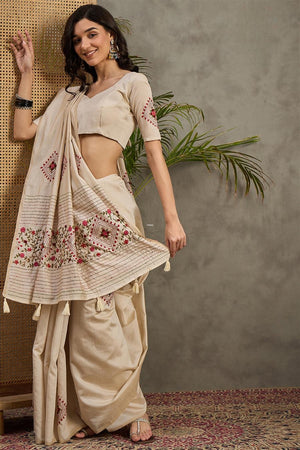 995002 Beautiful Semi Tussar Silk Hand Made Premium Suta Embroidery Saree