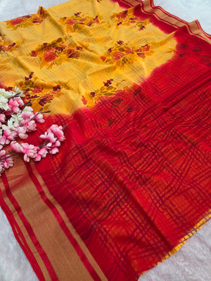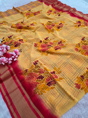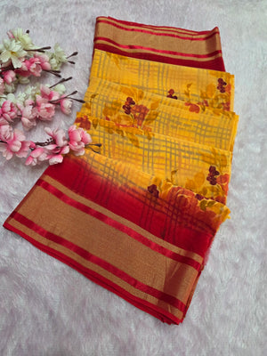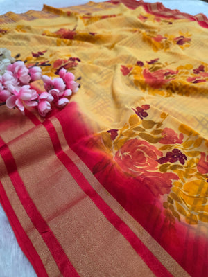 946004 Pure Rajwadi Diamond Chiffon Saree with Flower and Bloack Print with Zaro Border
