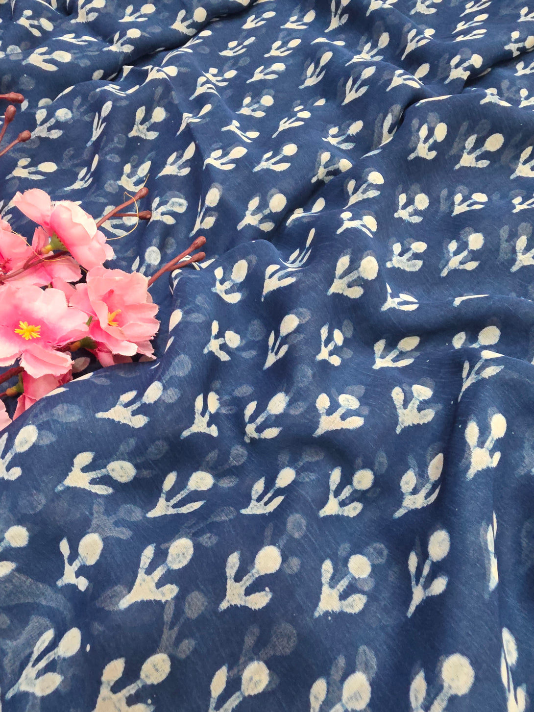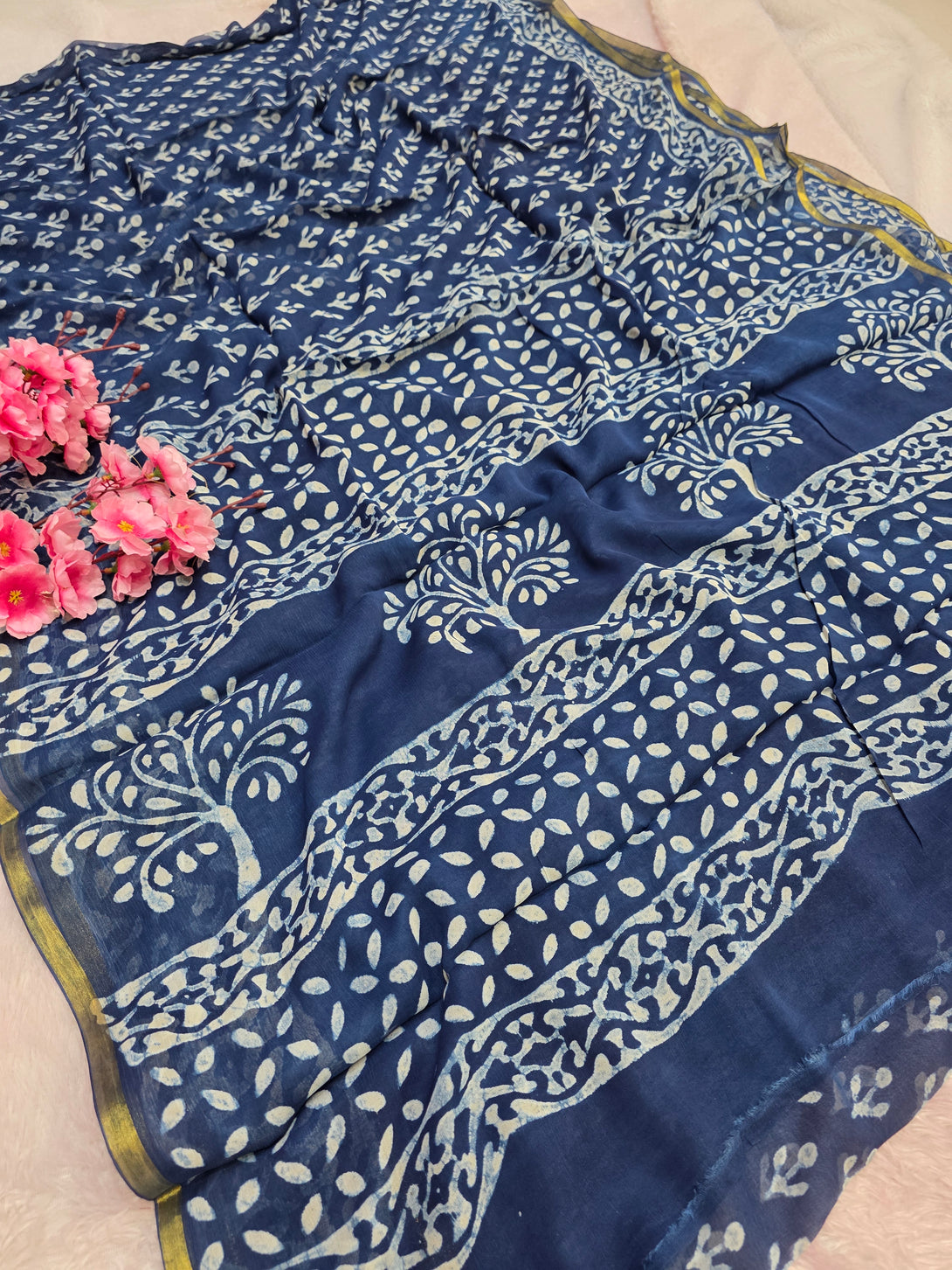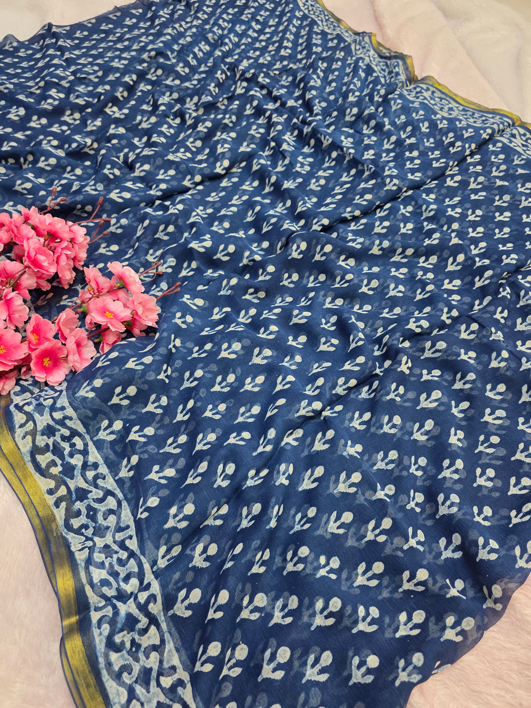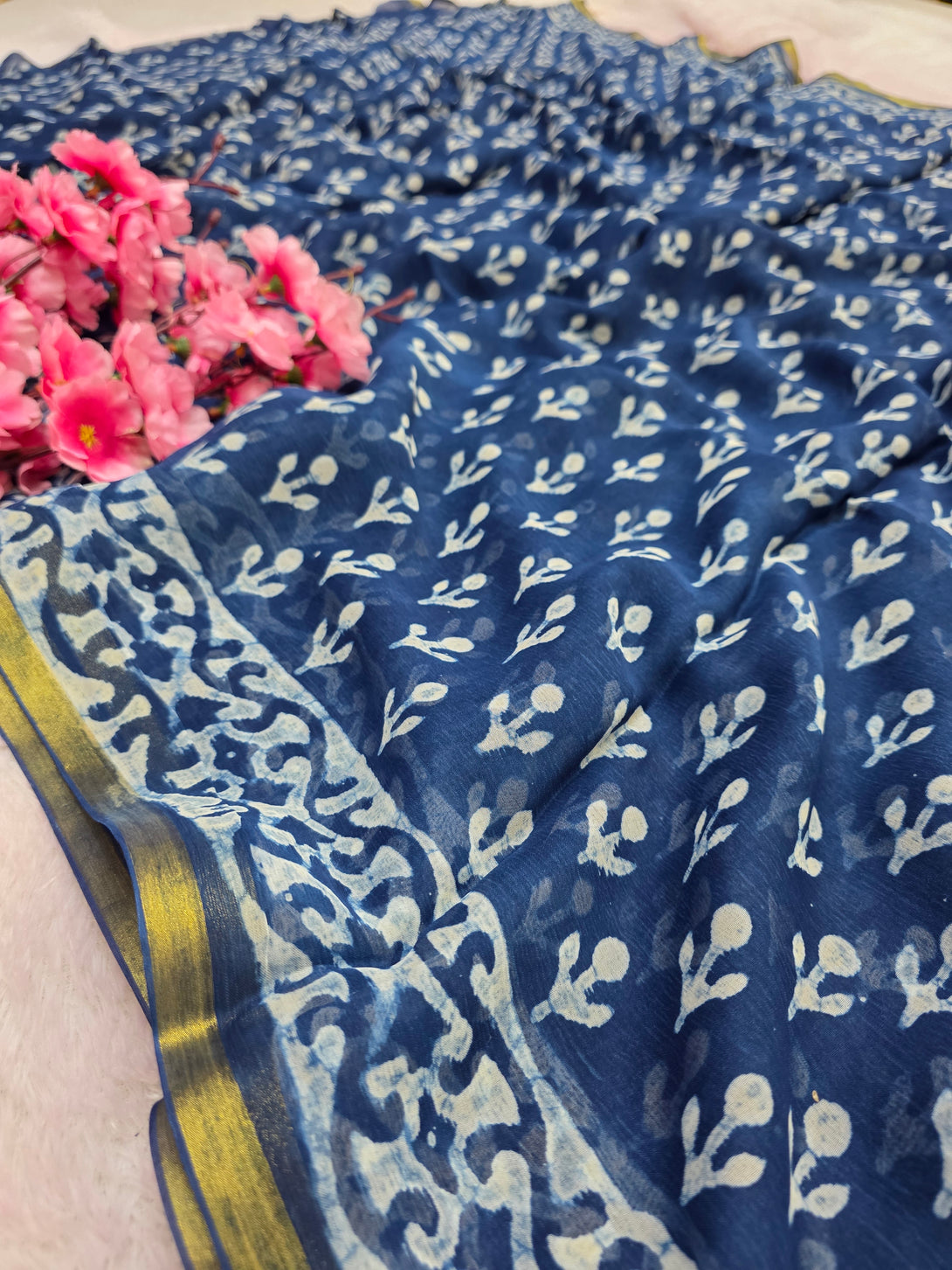 946008 Pure Rajasthani Diamond Chiffon Saree with Hand Batik Print and Zari Border