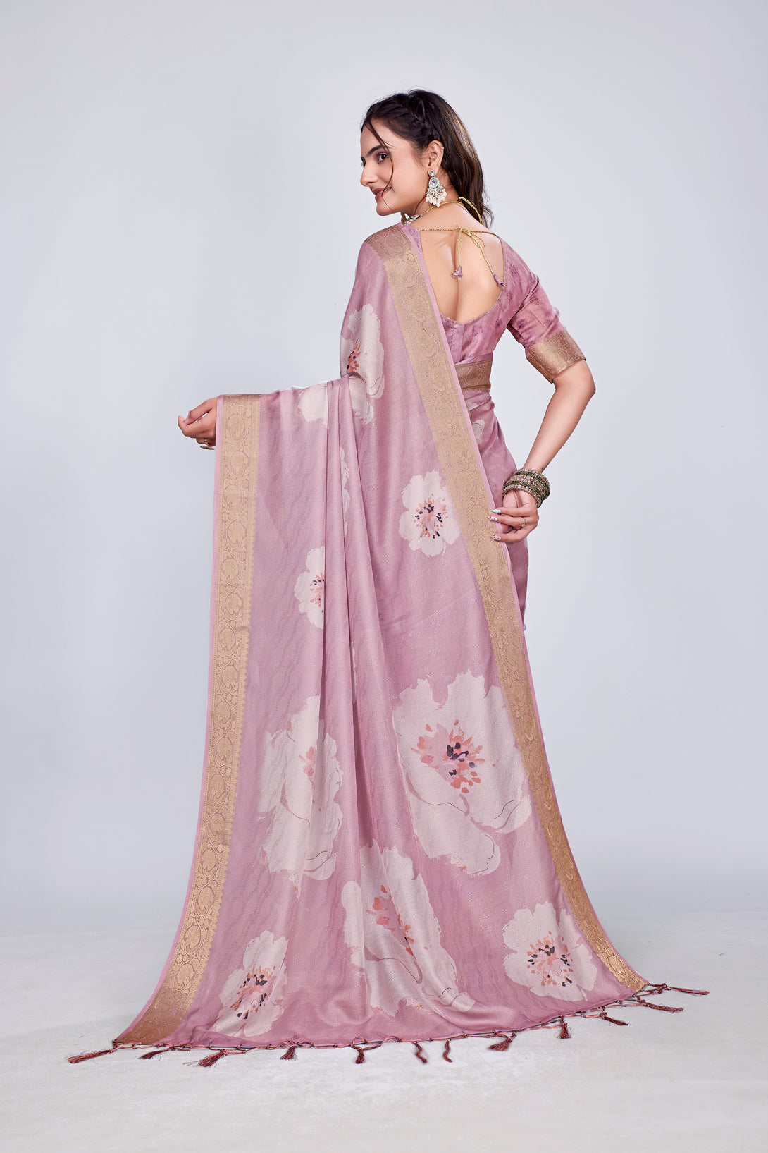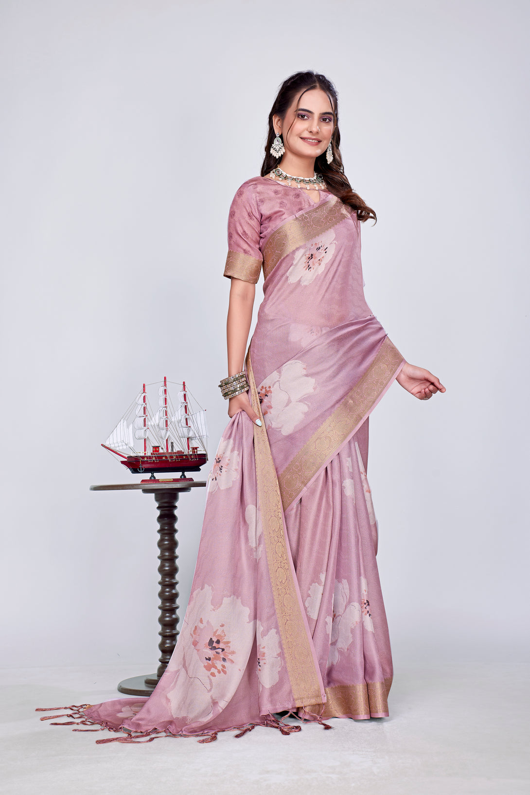 Exclusive Printed Branded Saree It has very high quality fabric with digital / flower print on all over saree very soft and rich in feel.