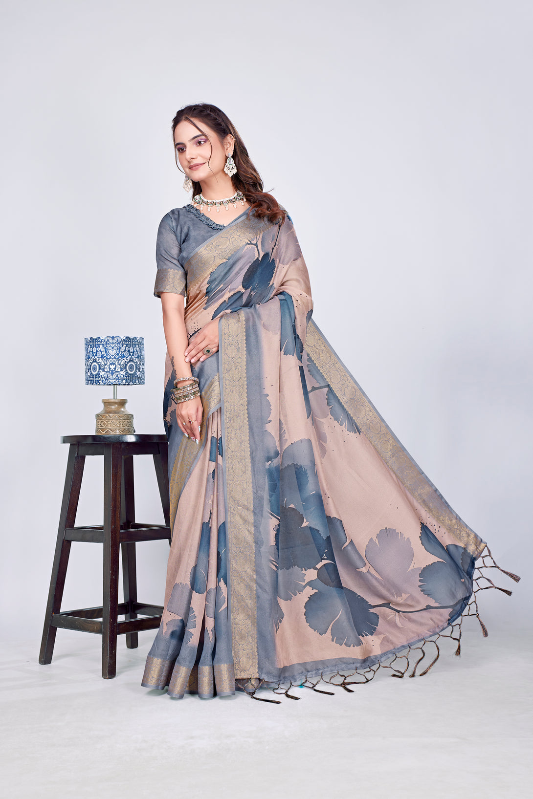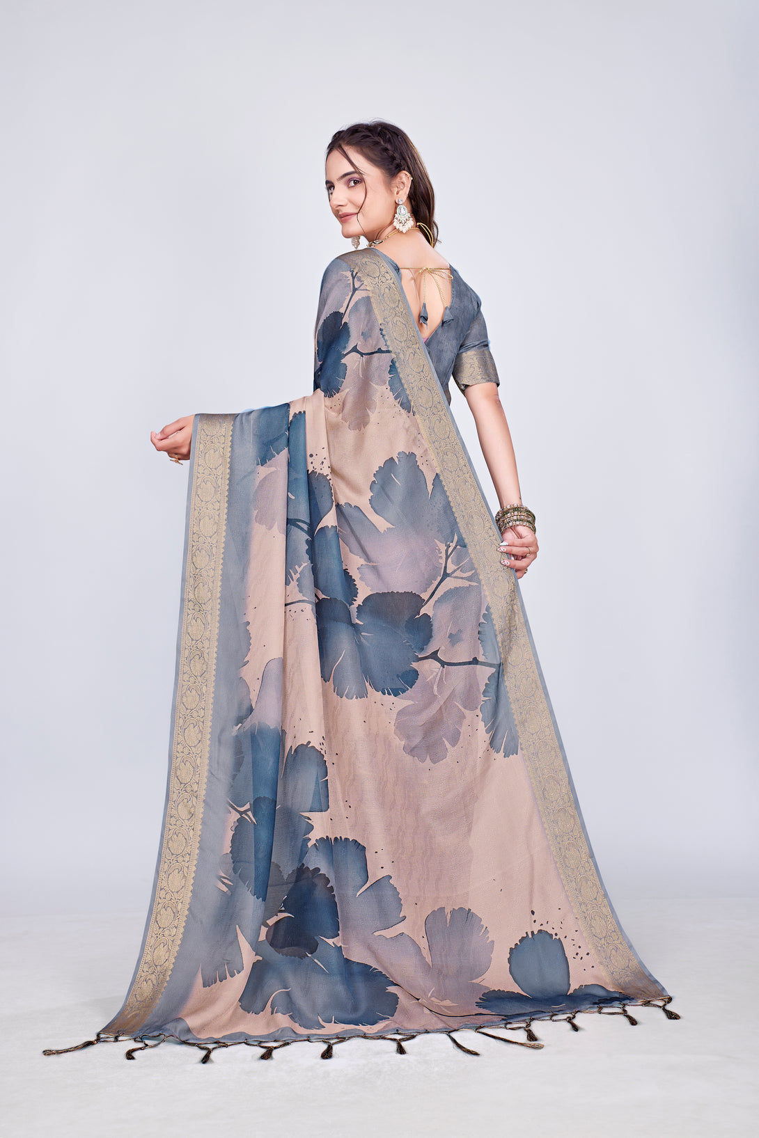 Exclusive Printed Branded Saree It has very high quality fabric with digital / flower print on all over saree very soft and rich in feel.