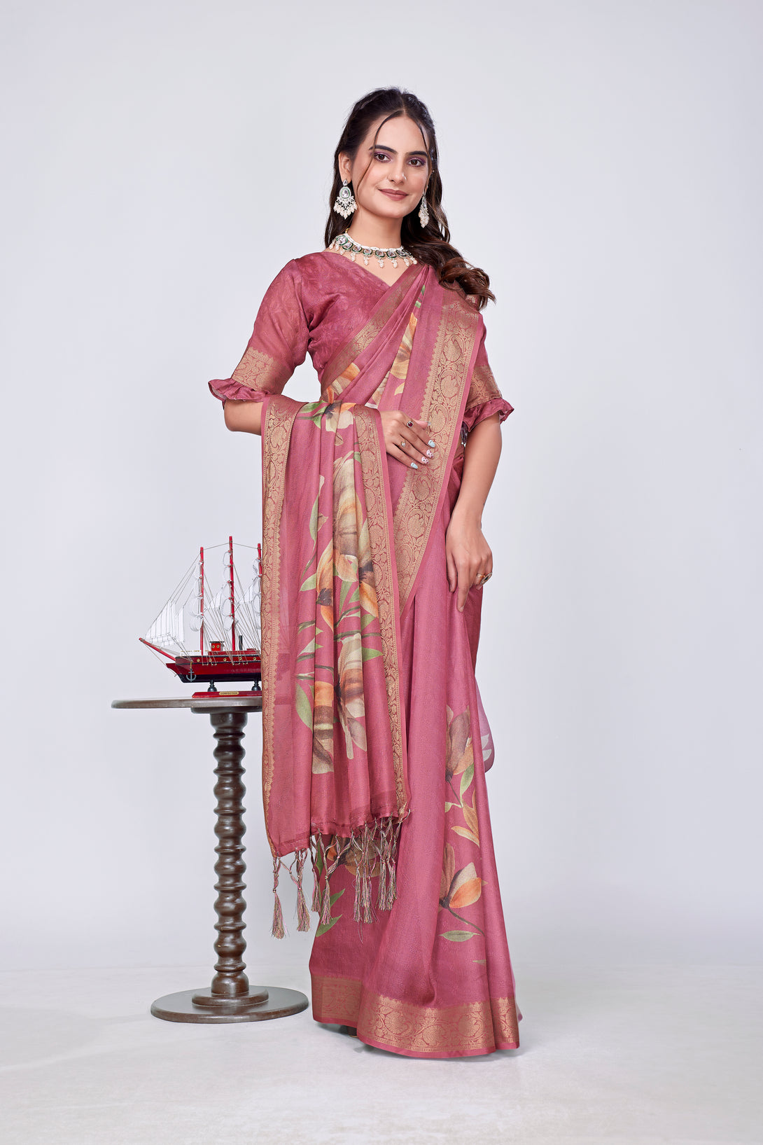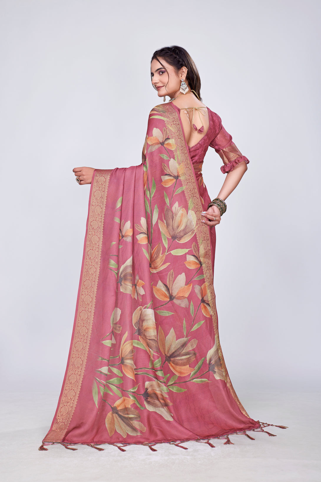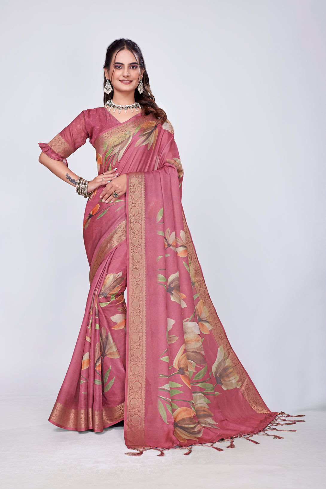 Exclusive Printed Branded Saree It has very high quality fabric with digital / flower print on all over saree very soft and rich in feel.