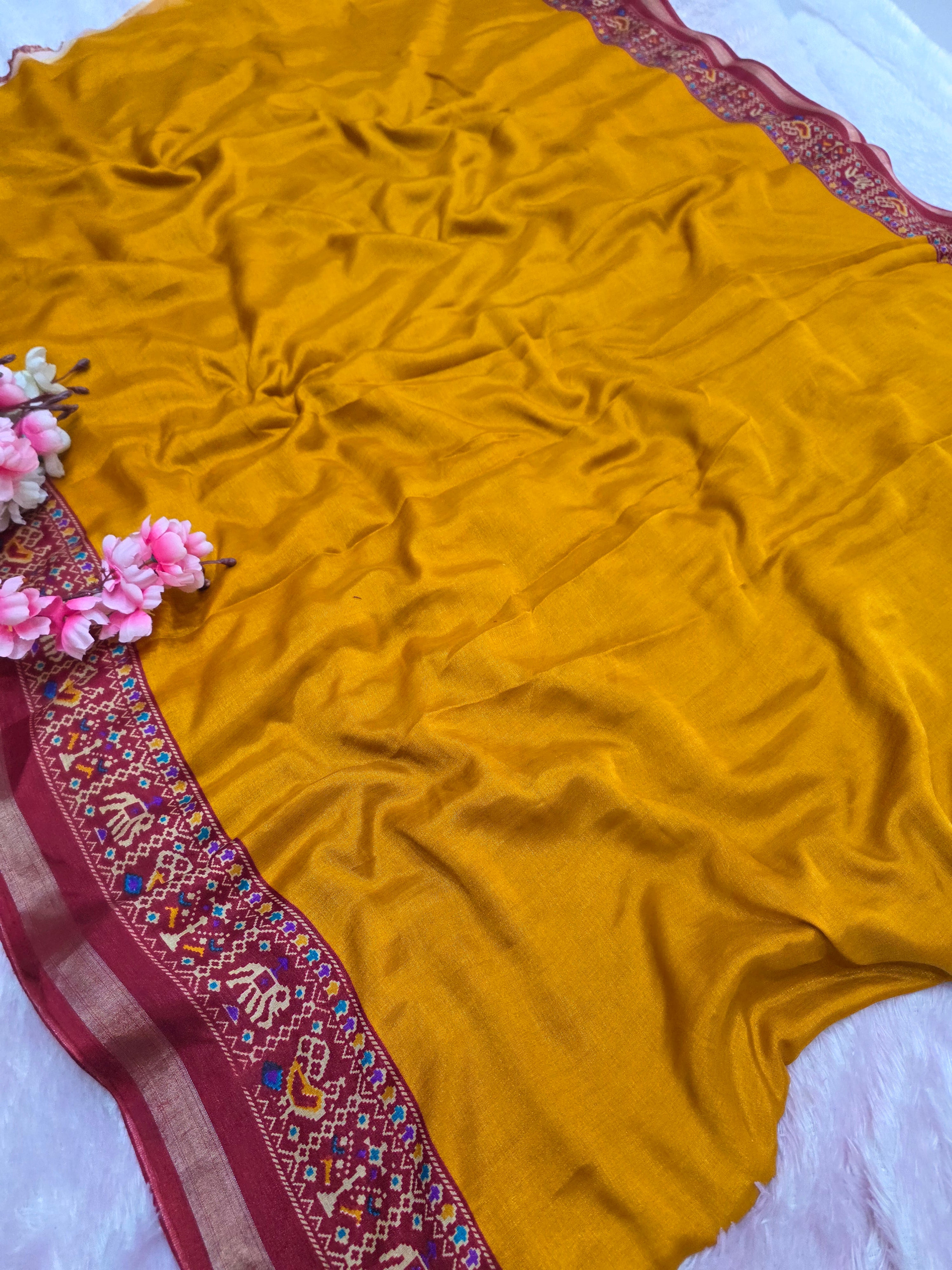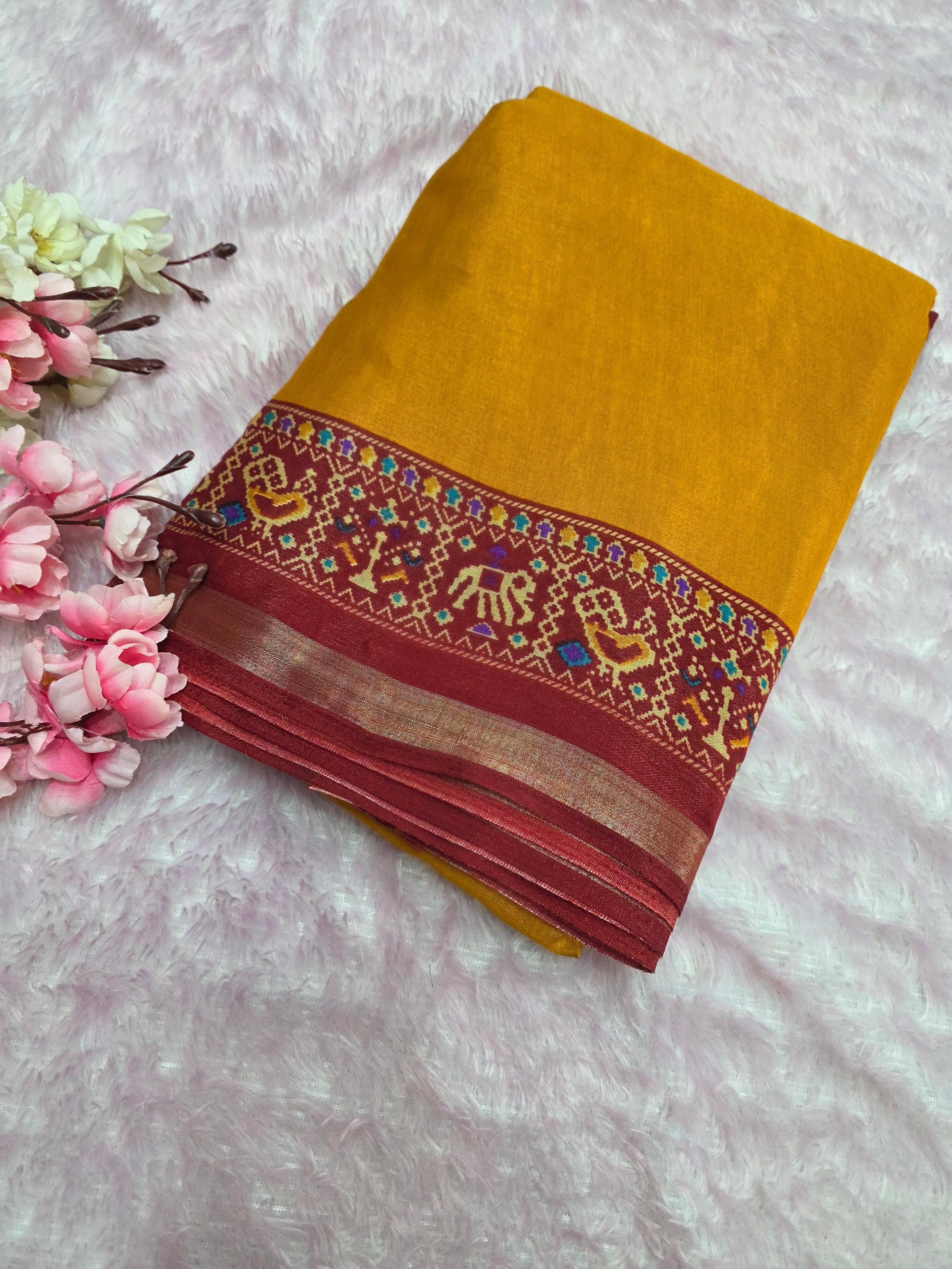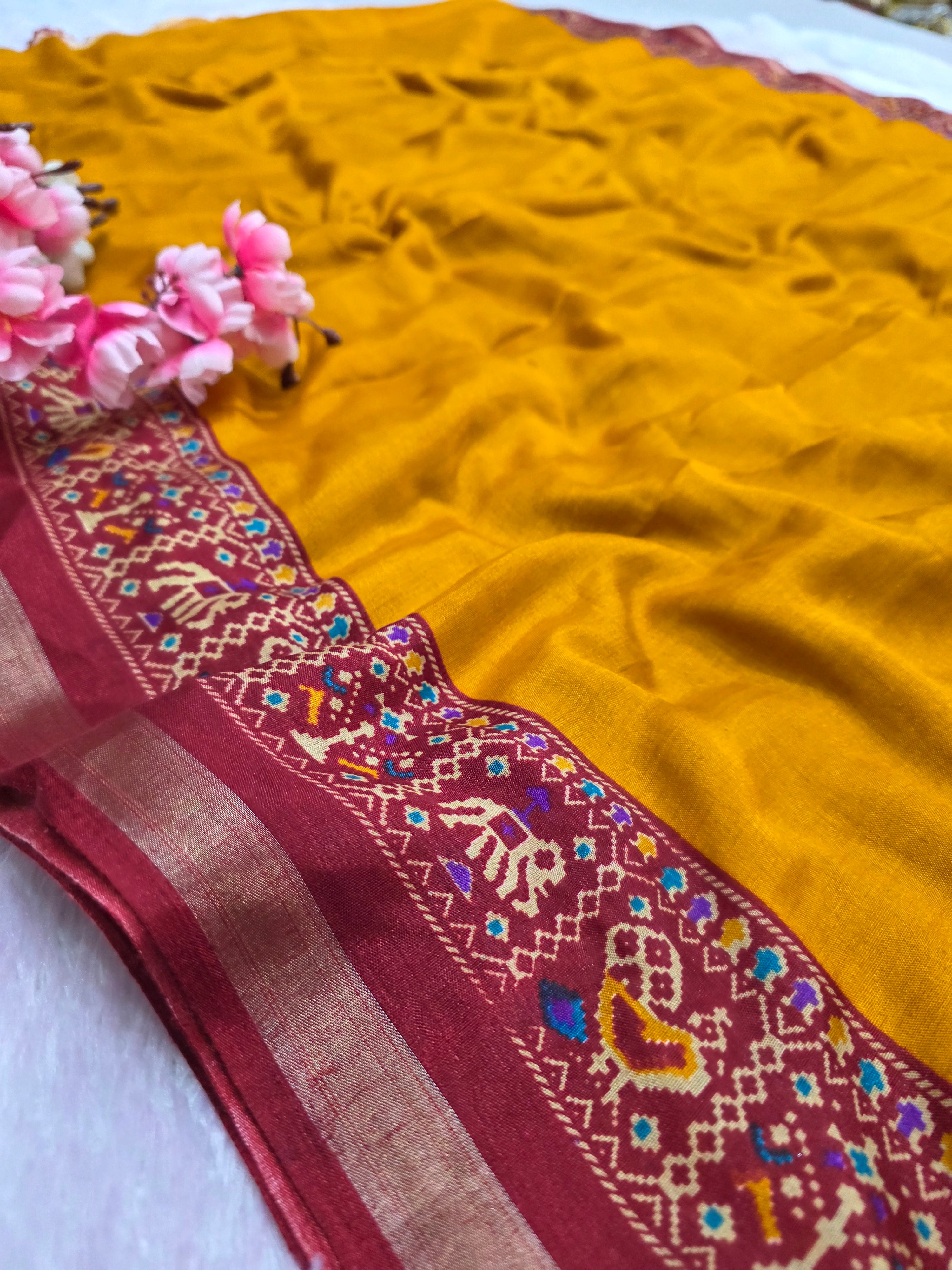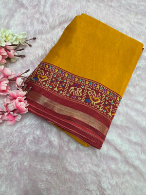 Home 964004 Traditional Patola Border Saree with Plain Body Dola Silk Saree - Yellow