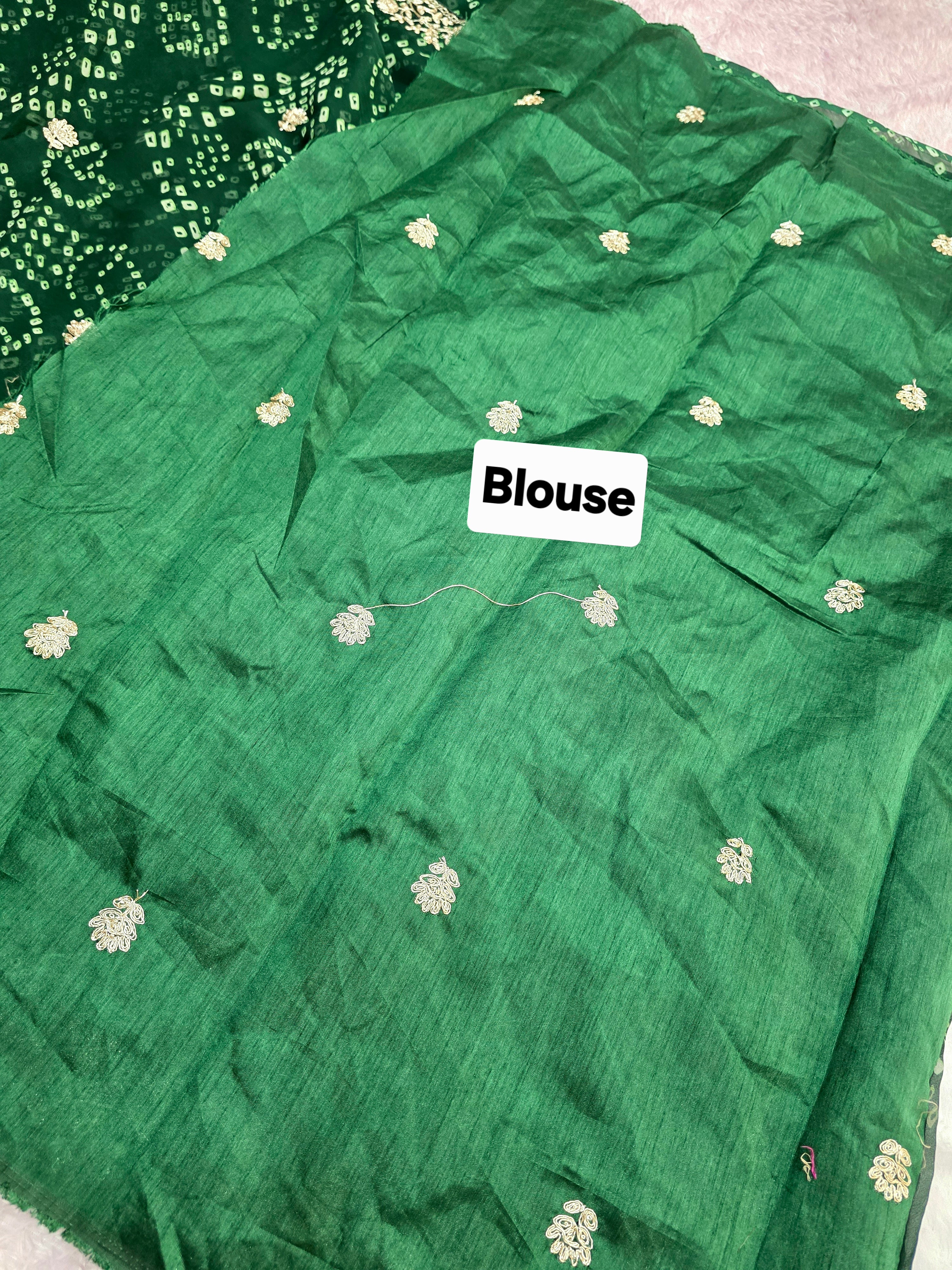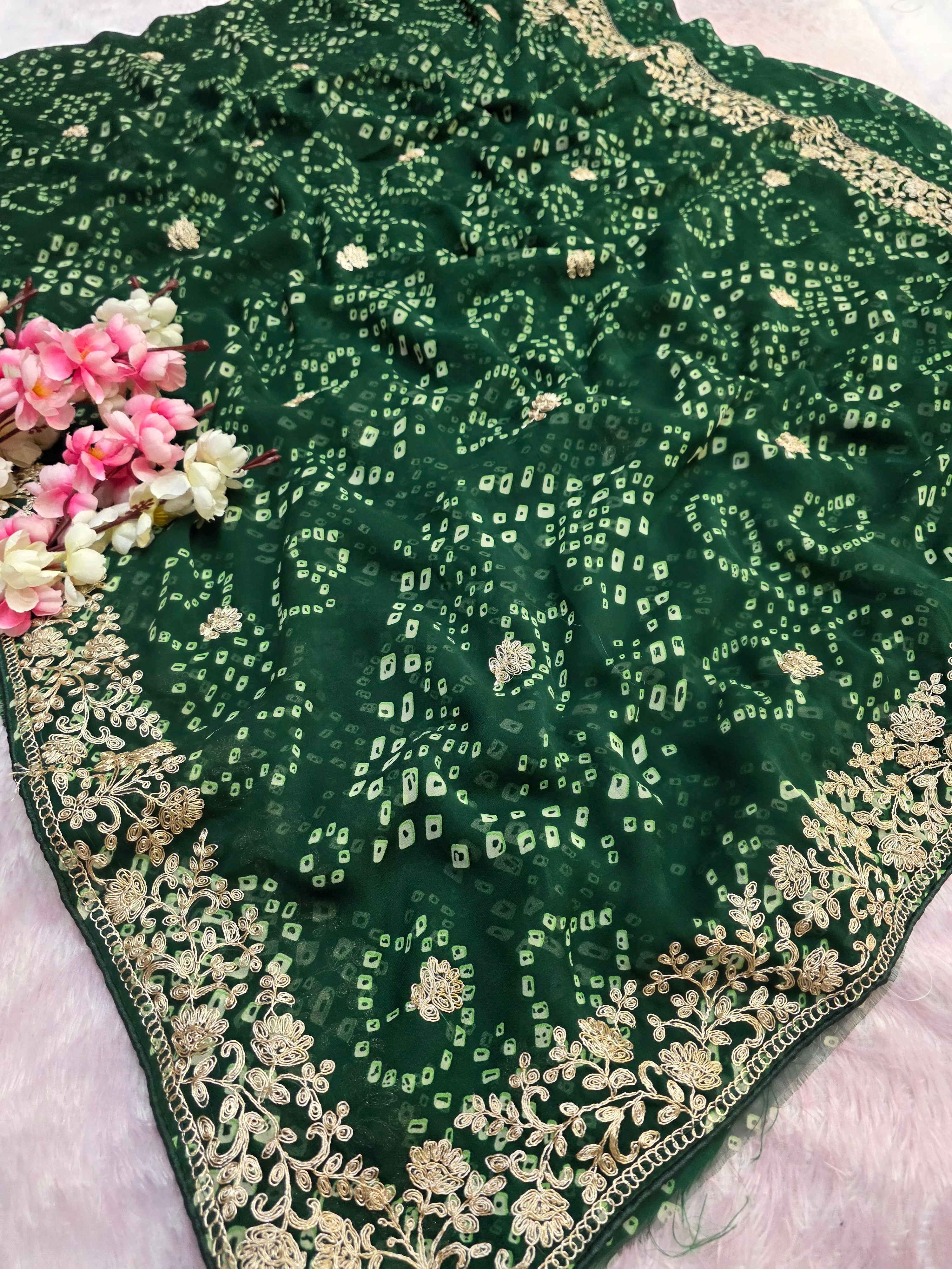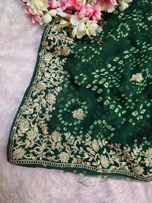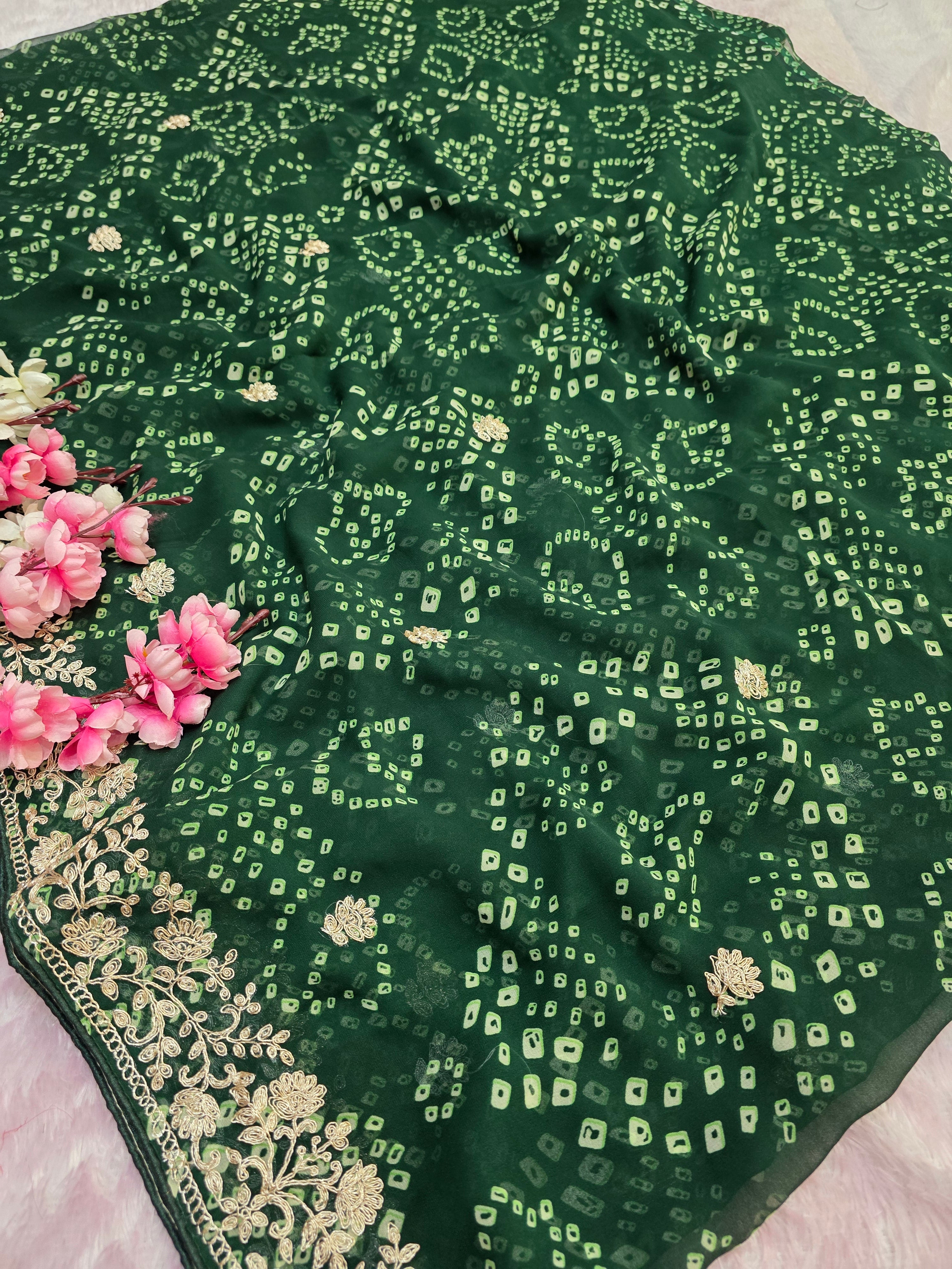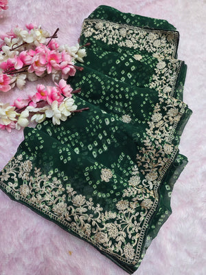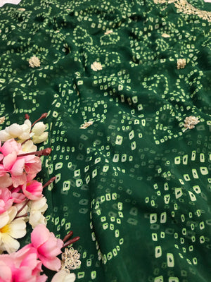 967001 Rajasthani Traditional Georgette Bandhani Saree with Pitta Work - Green