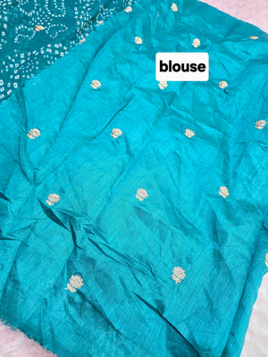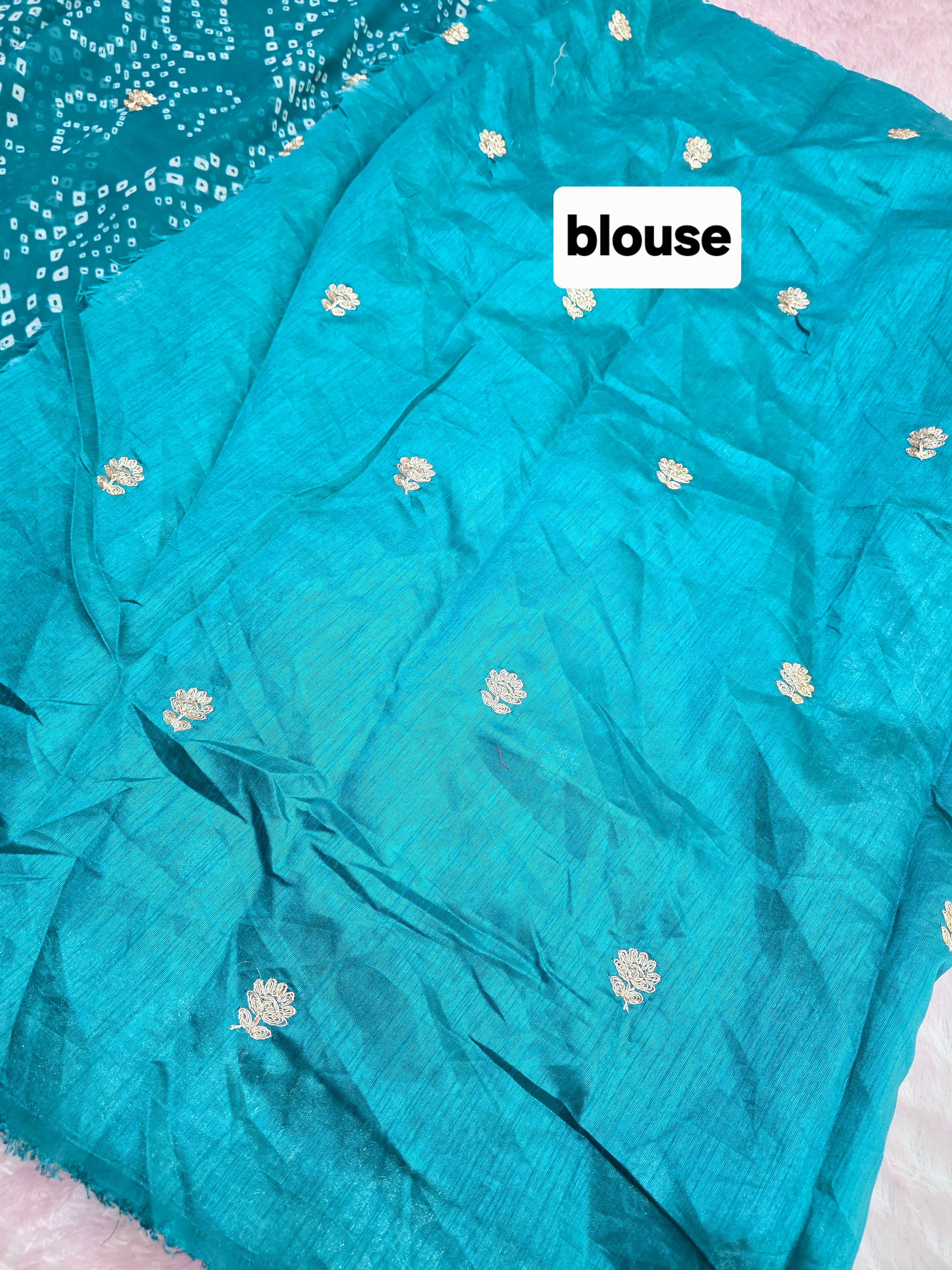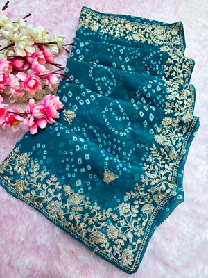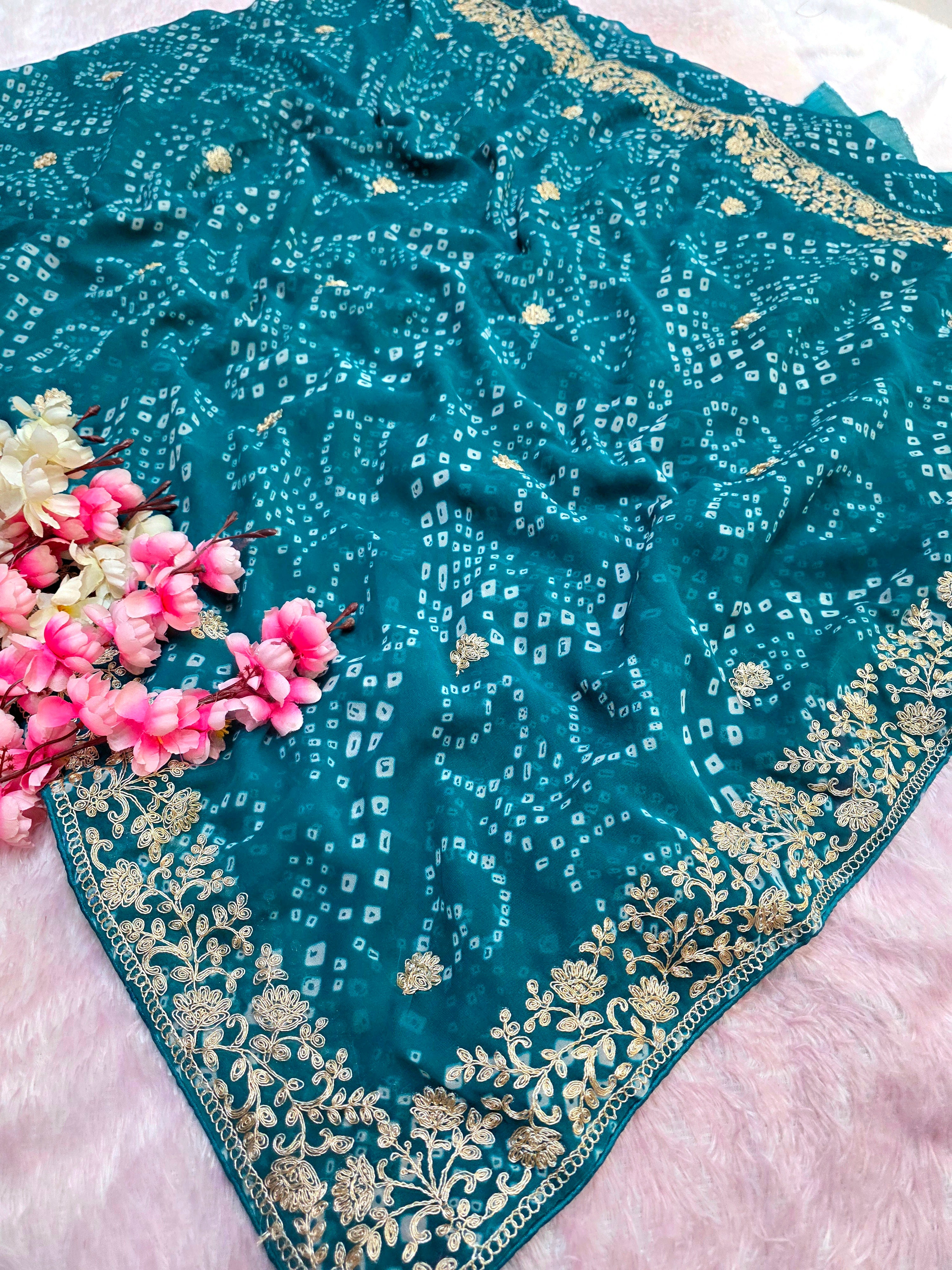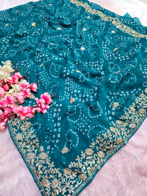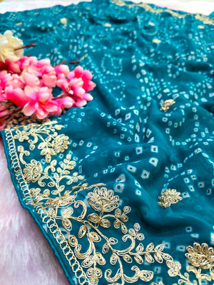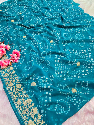967001 Rajasthani Traditional Georgette Bandhani Saree with Pitta Work - Teal Blue