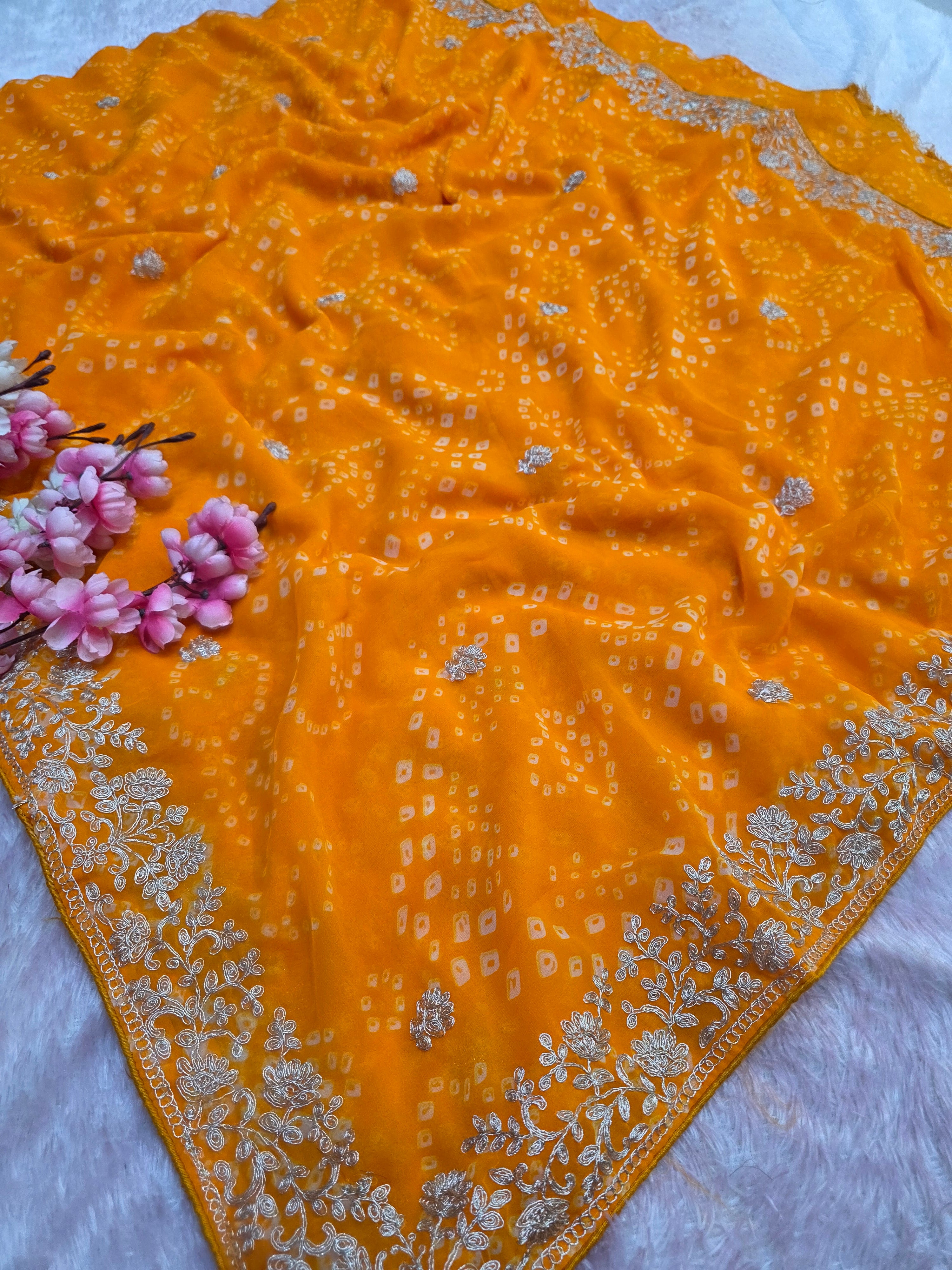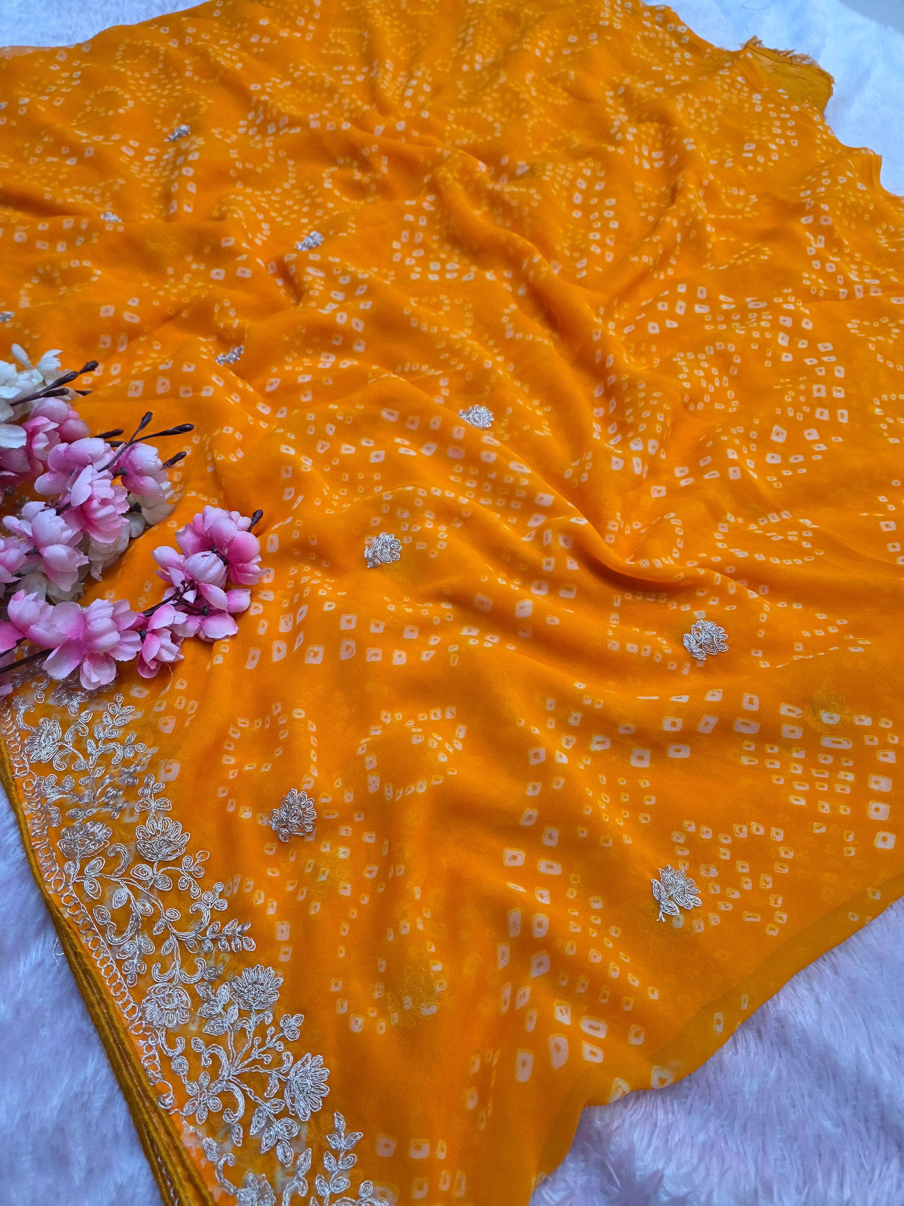 967001 Rajasthani Traditional Georgette Bandhani Saree with Pitta Work - Yellow