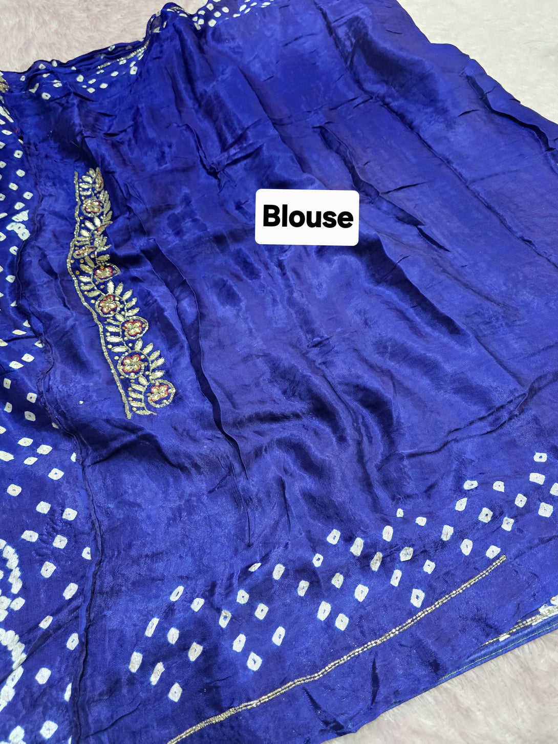 967004 Traditional Semi Gajji Silk Bandhani Saree with Hand Gota Patti Work - Blue