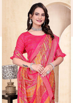 968006 Soft Semi Dola Silk Self Weaving Bandhani Print Saree with Banarasi Border