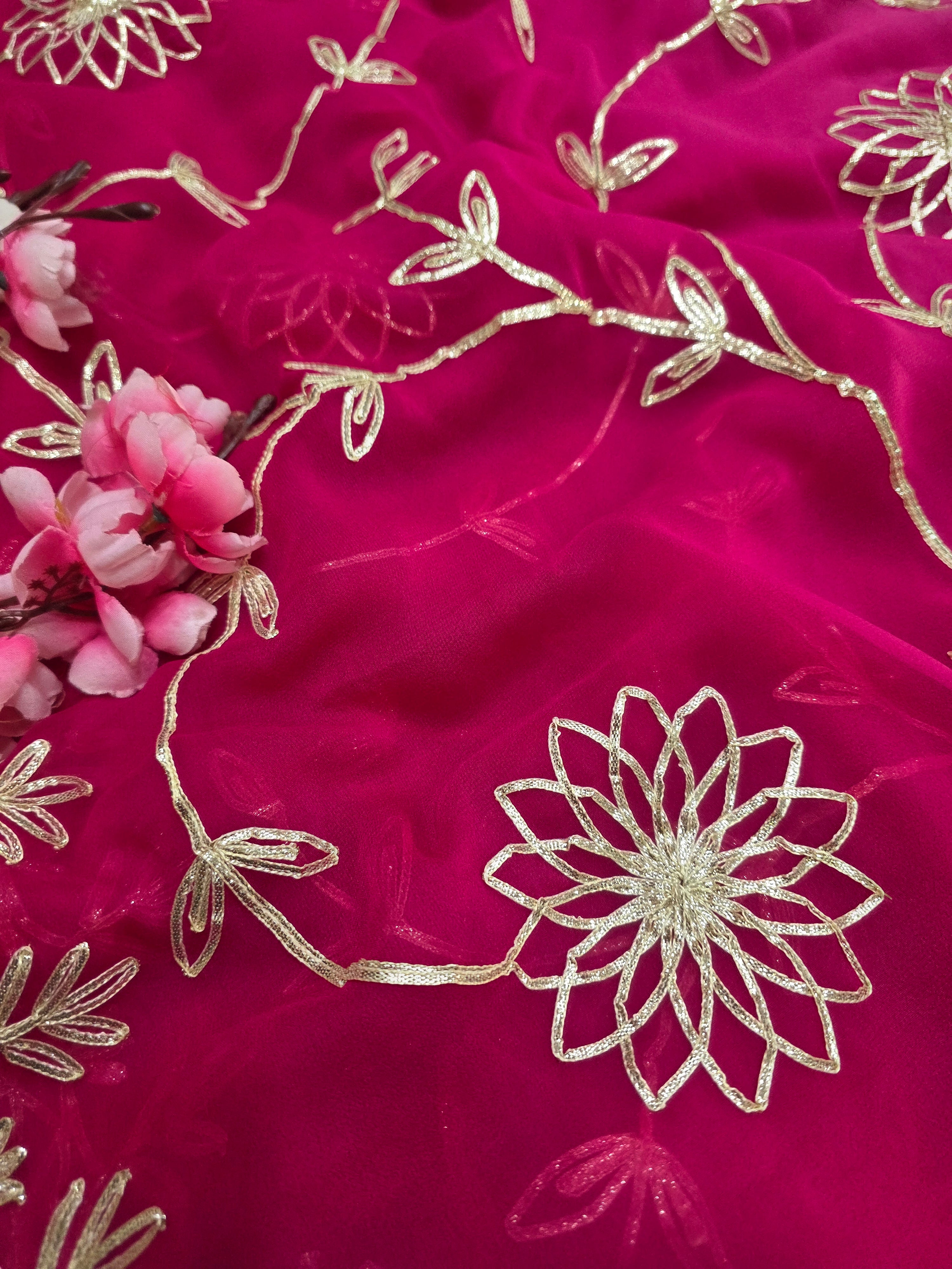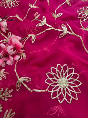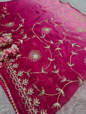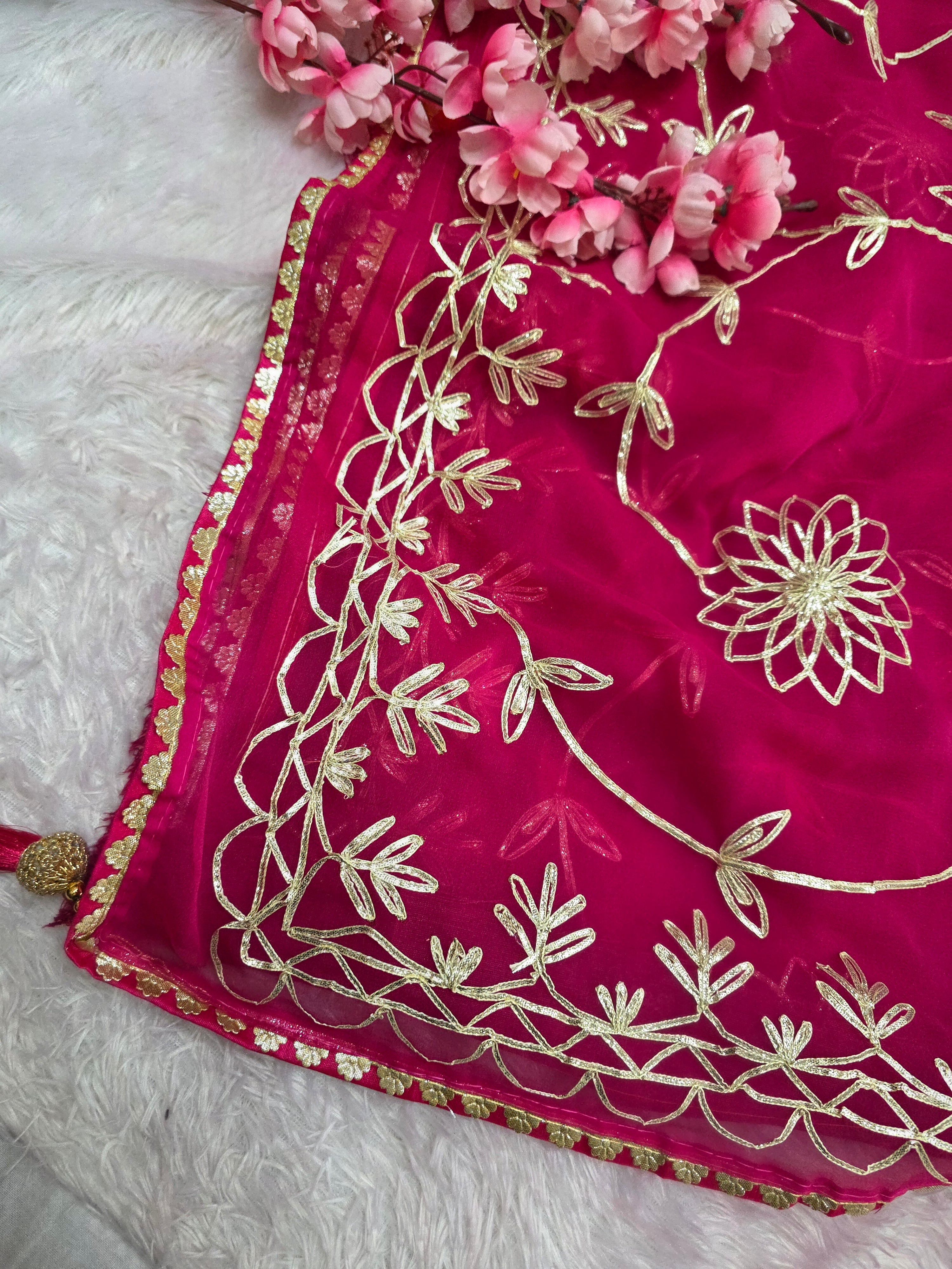 969003 Rajwadi Party Wear Royal Georgette Saree with Gotapatti Work - Pink Rani