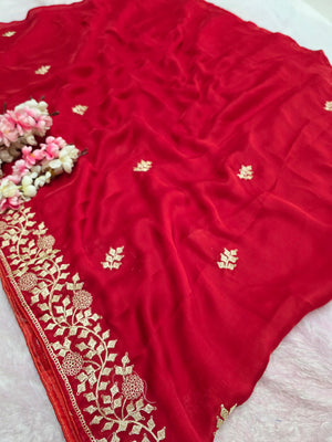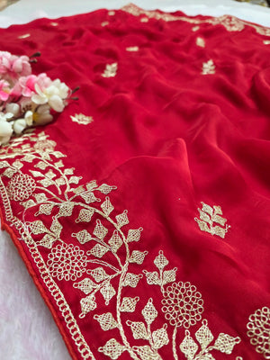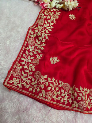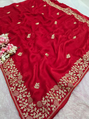 969004 Designer Party Wear Art Silk Fancy Saree with Pita Work - Red