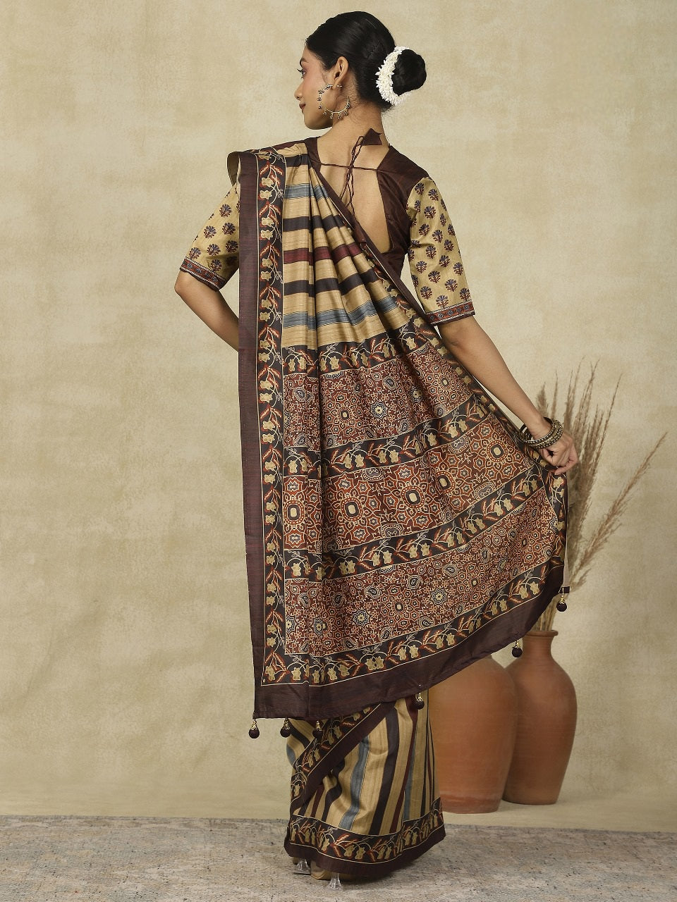970001 Traditional Ajrakh Print Kozy Silk Light Weight Saree