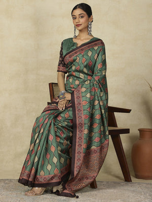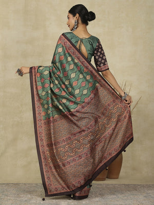 970004 Traditional Ajrakh Print Kozy Silk Light Weight Saree