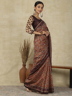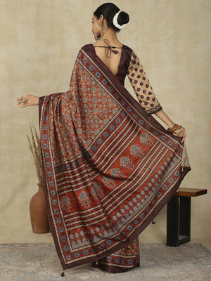 970008 Traditional Ajrakh Print Kozy Silk Light Weight Saree