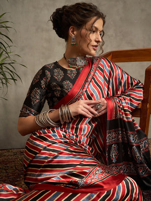 971007 Trending Ajrakh Print Semi Modal Silk Saree 12438