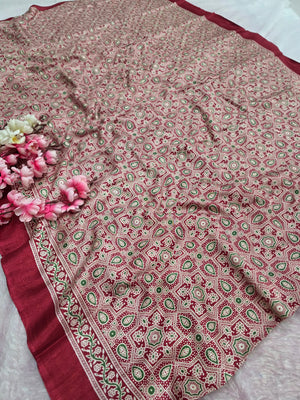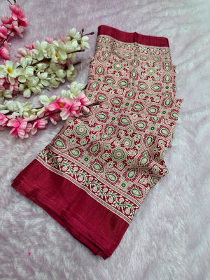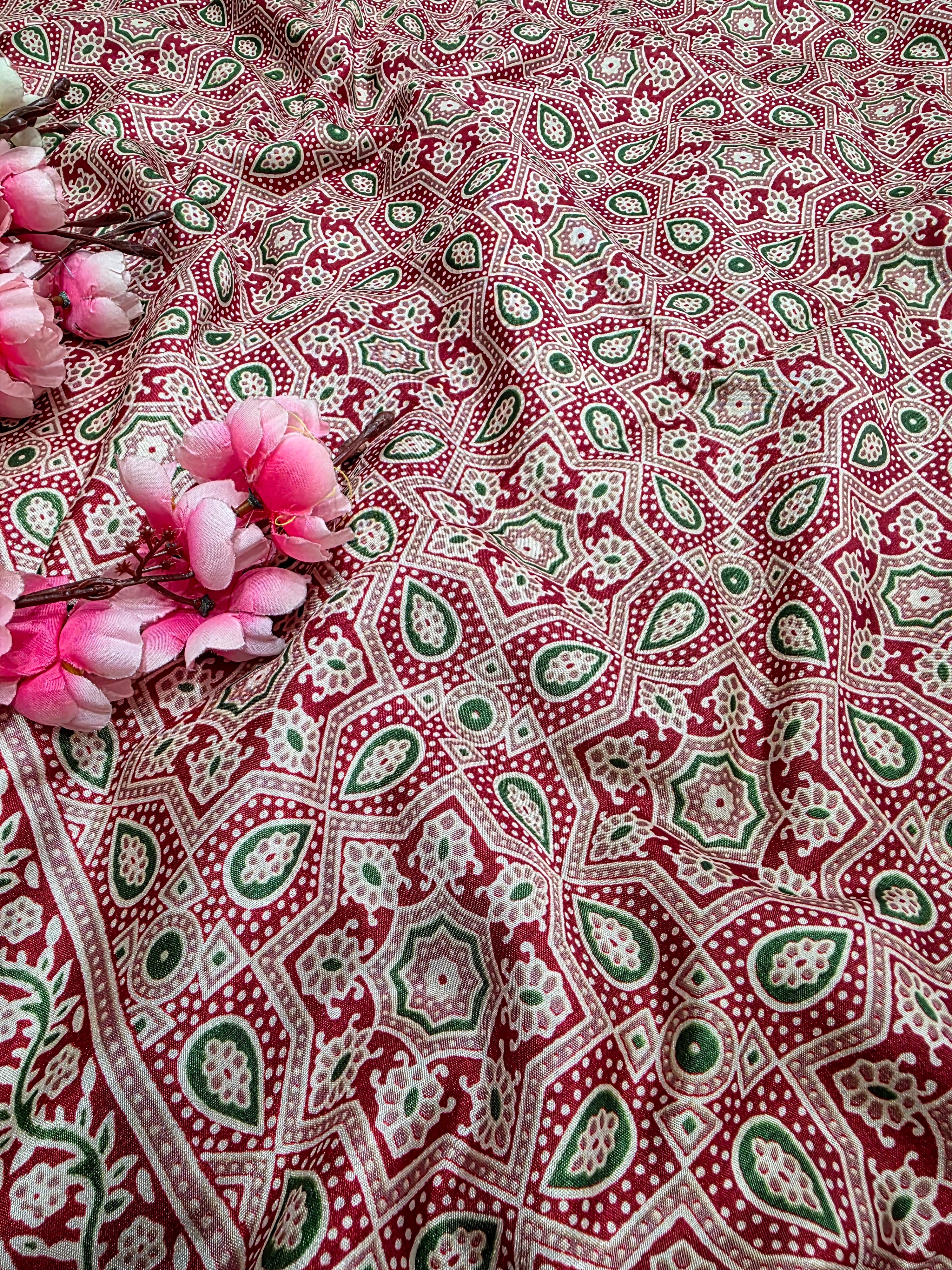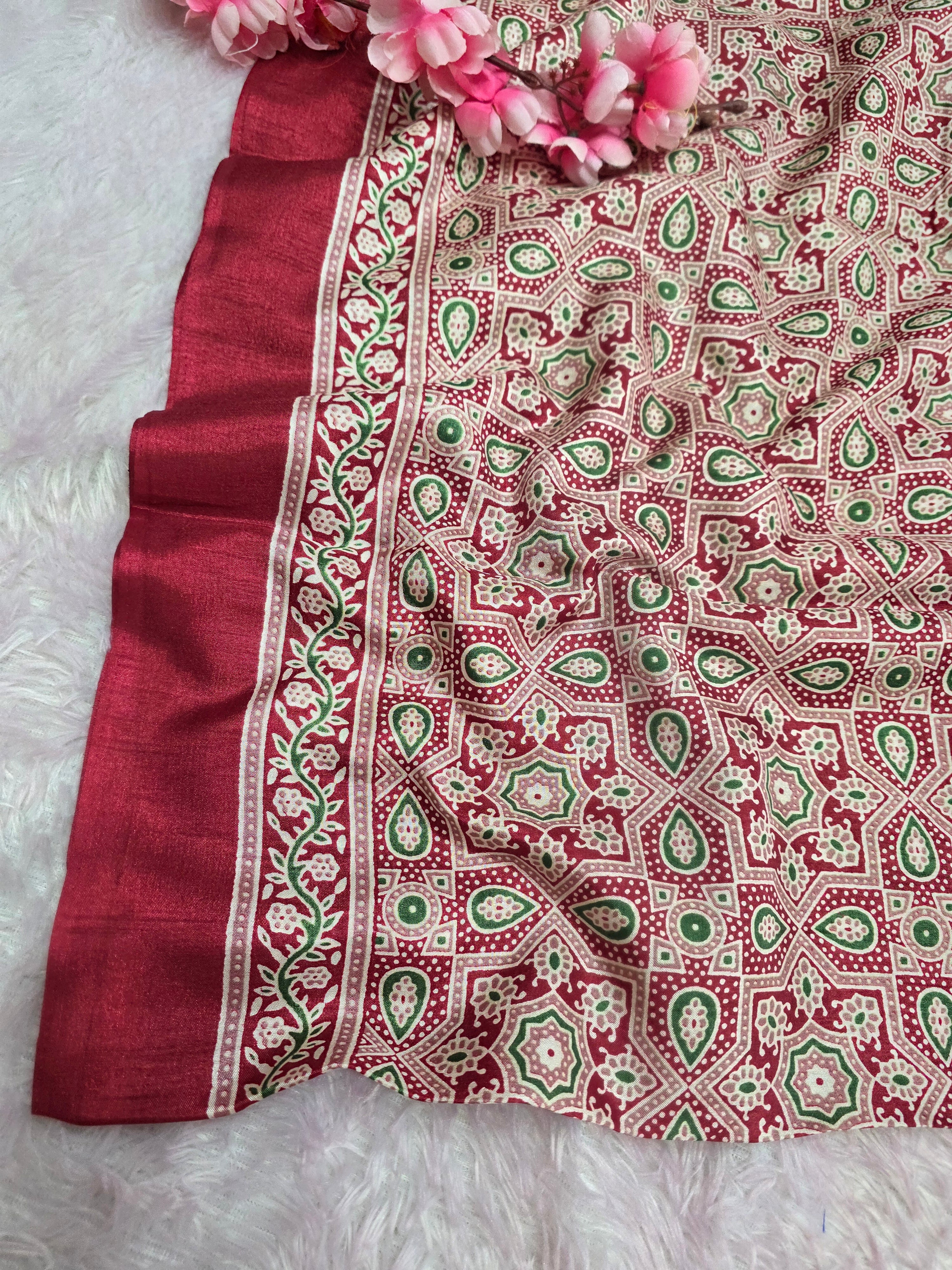 973001 Traditional Ajrakh Print Semi Dola Silk Saree - Red