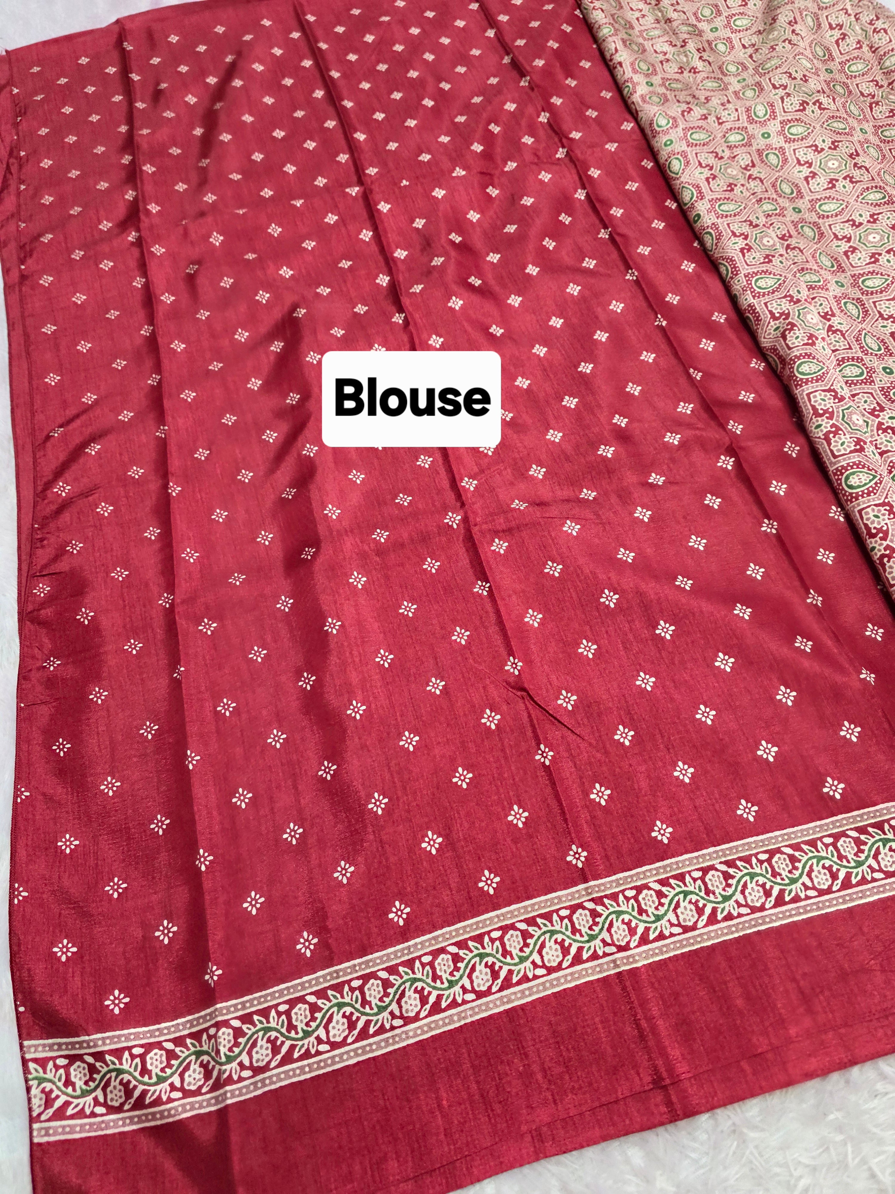 Elevate your ethnic look with this Ajrakh Print Semi Dola Saree – a blend of tradition and luxury. Made from premium Dola silk, it features authentic Ajrakh block prints in rich, timeless patterns.