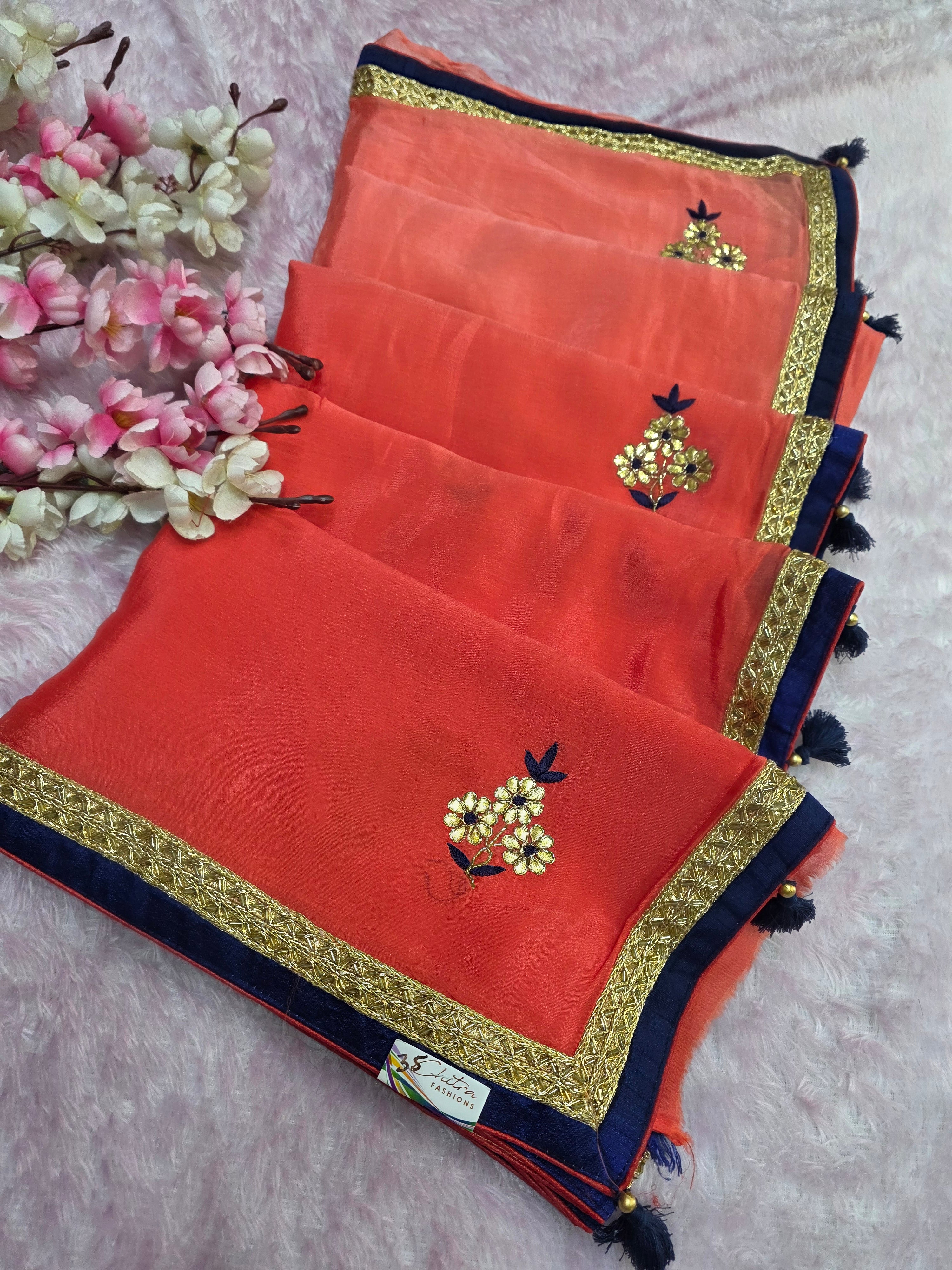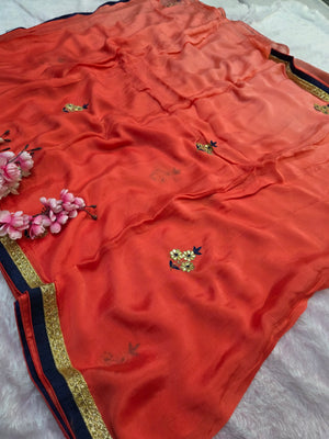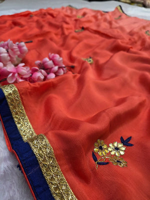 976001 Pure Chinon Silk Shaded Gota Patti Hand Work party Wear Saree