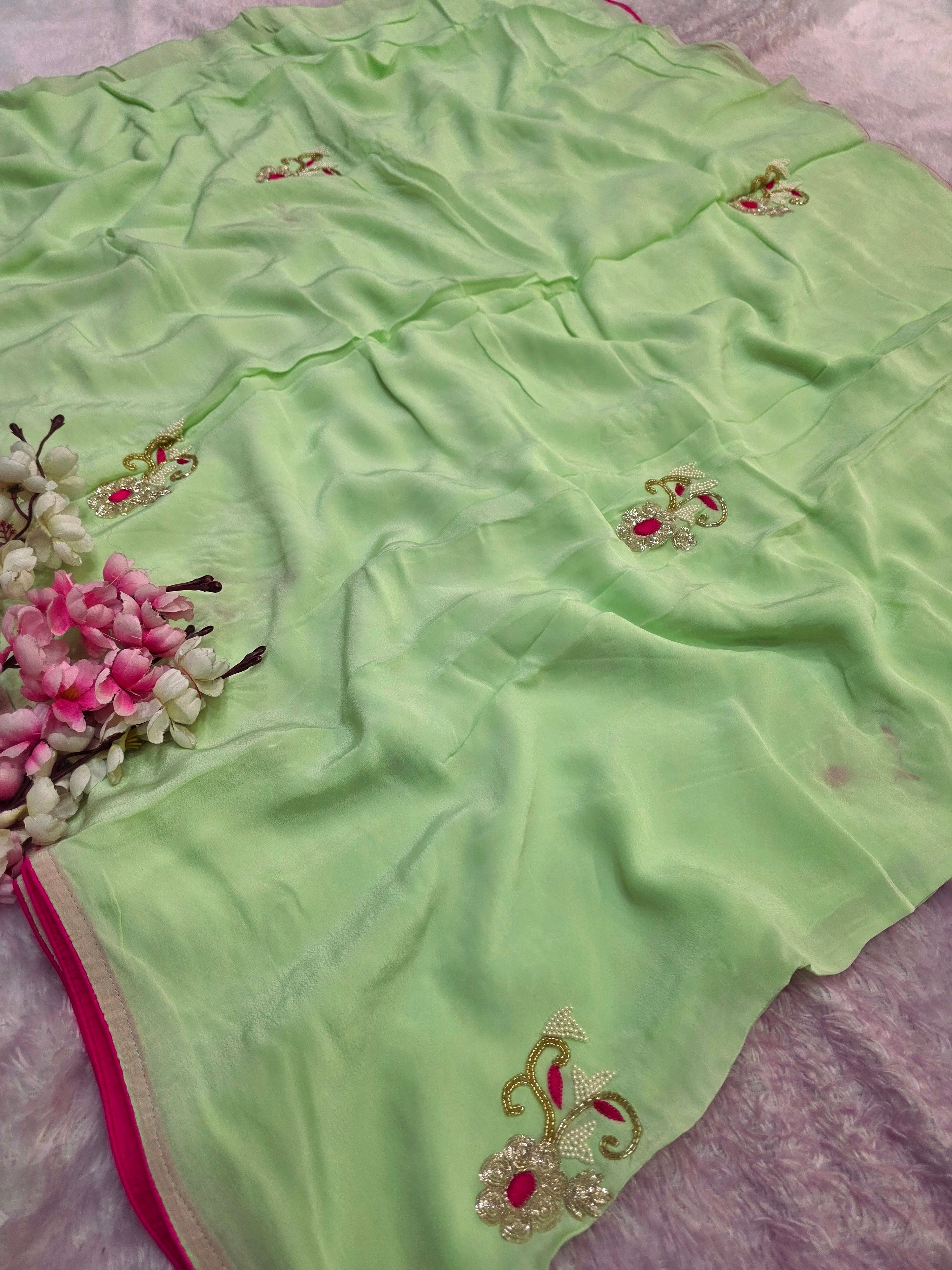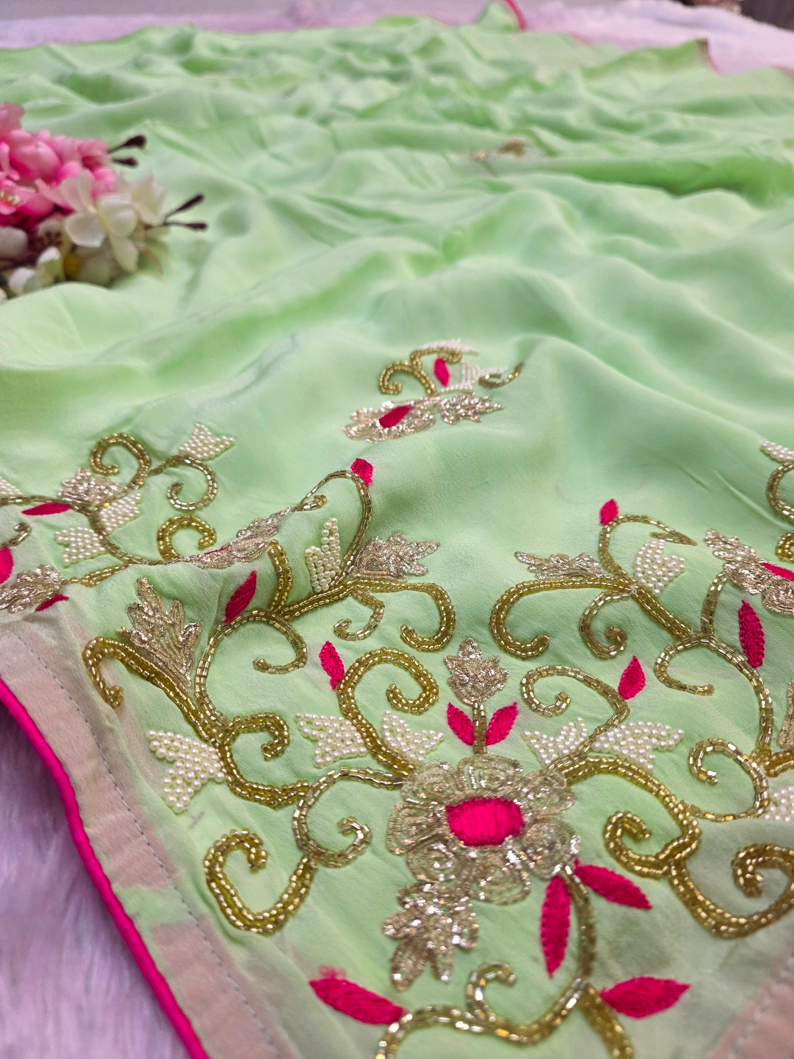 976003 Pure Chinon Silk Hand Work party Wear Saree