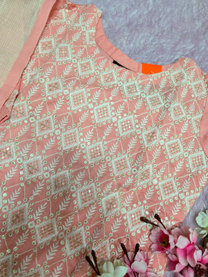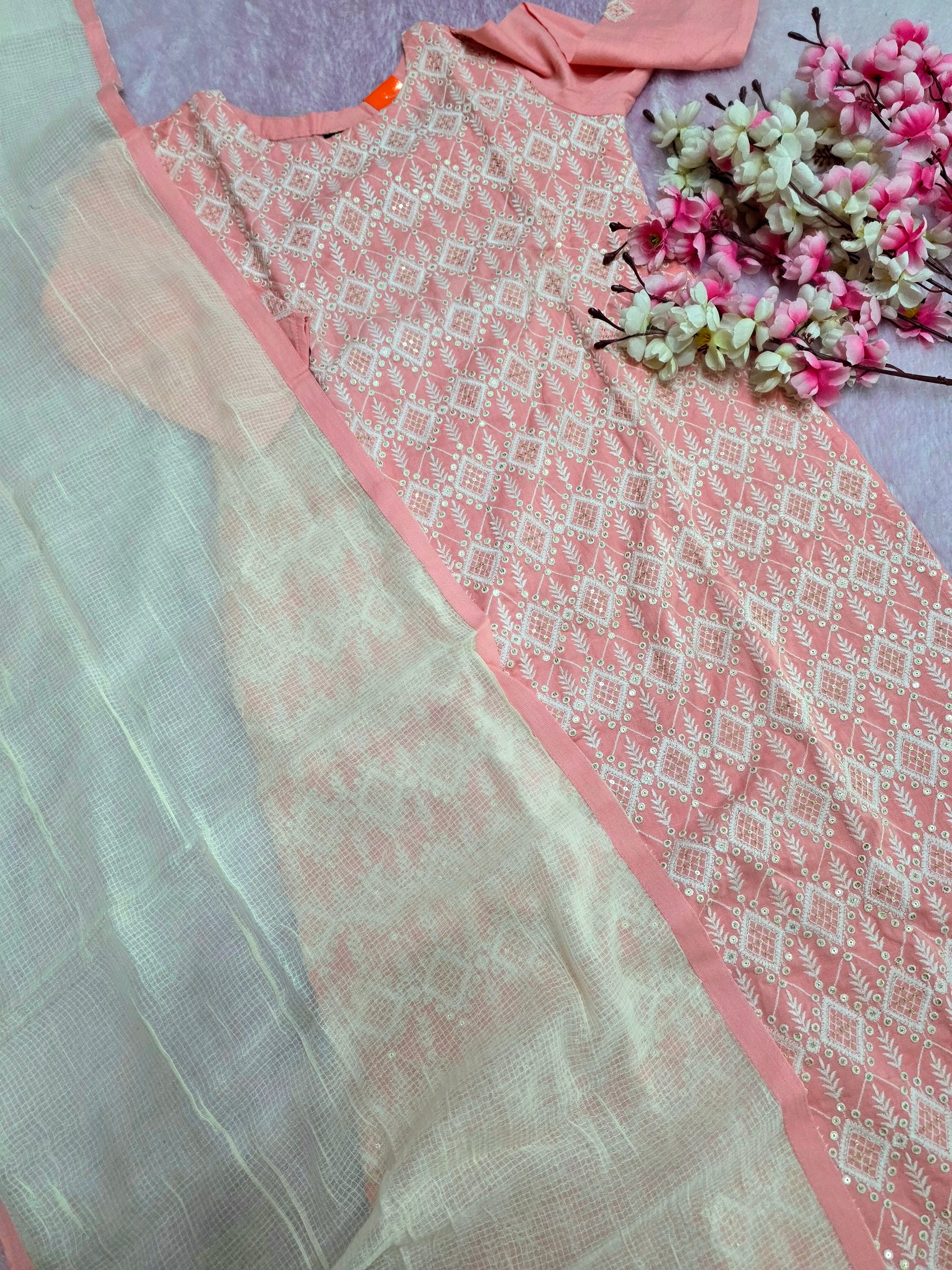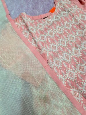 977001 Pure Cotton Kurti with Heavy Embroidery With Dupatta
