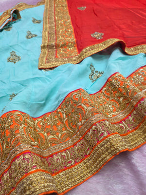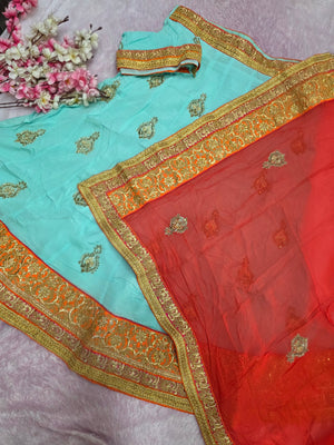 978001 Rajasthani Traditional Lehenga with Chinon Dupatta - Blue
