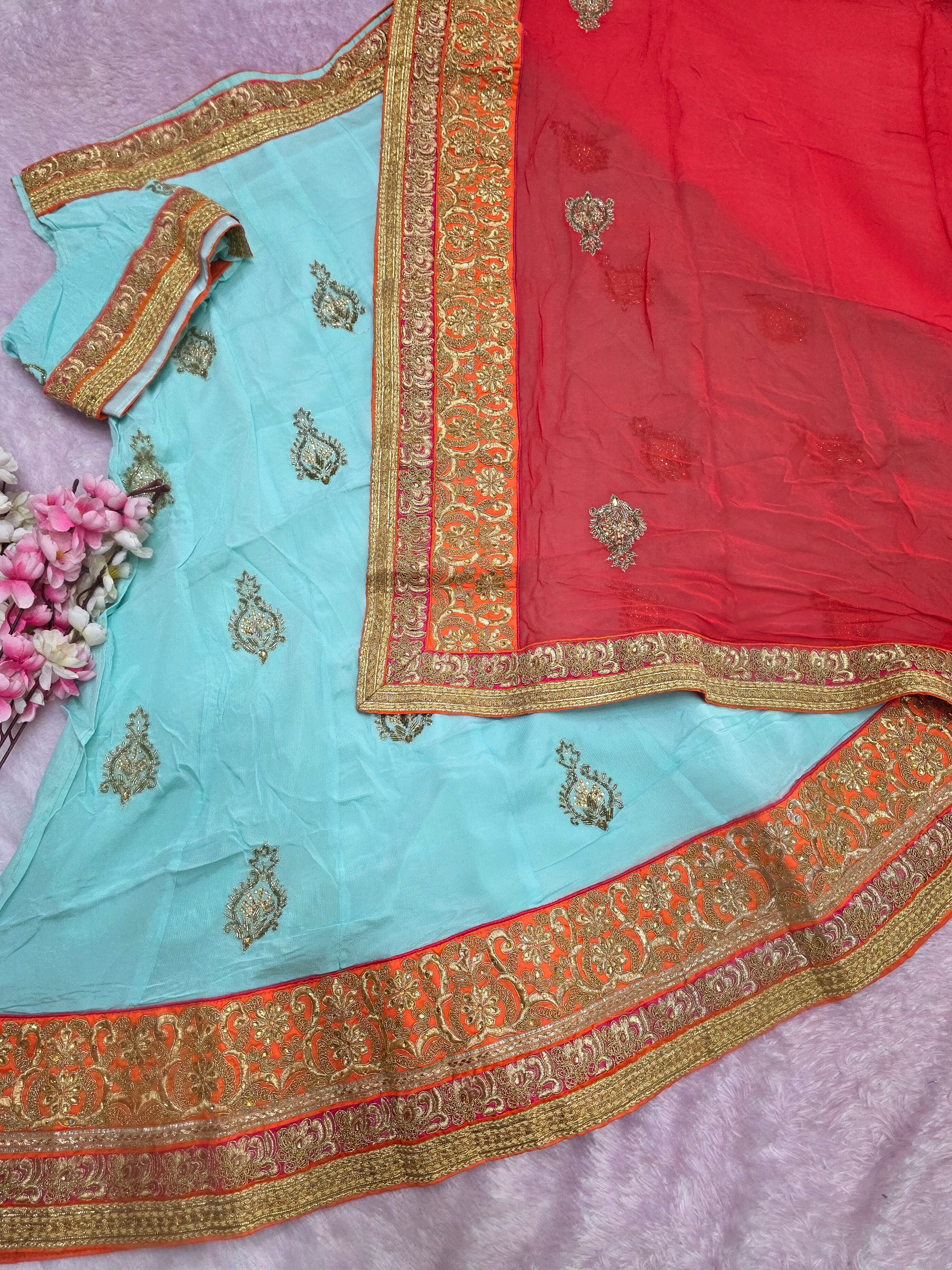 - Blouse Fabric: Chinon Silk