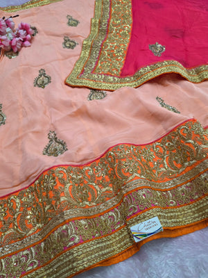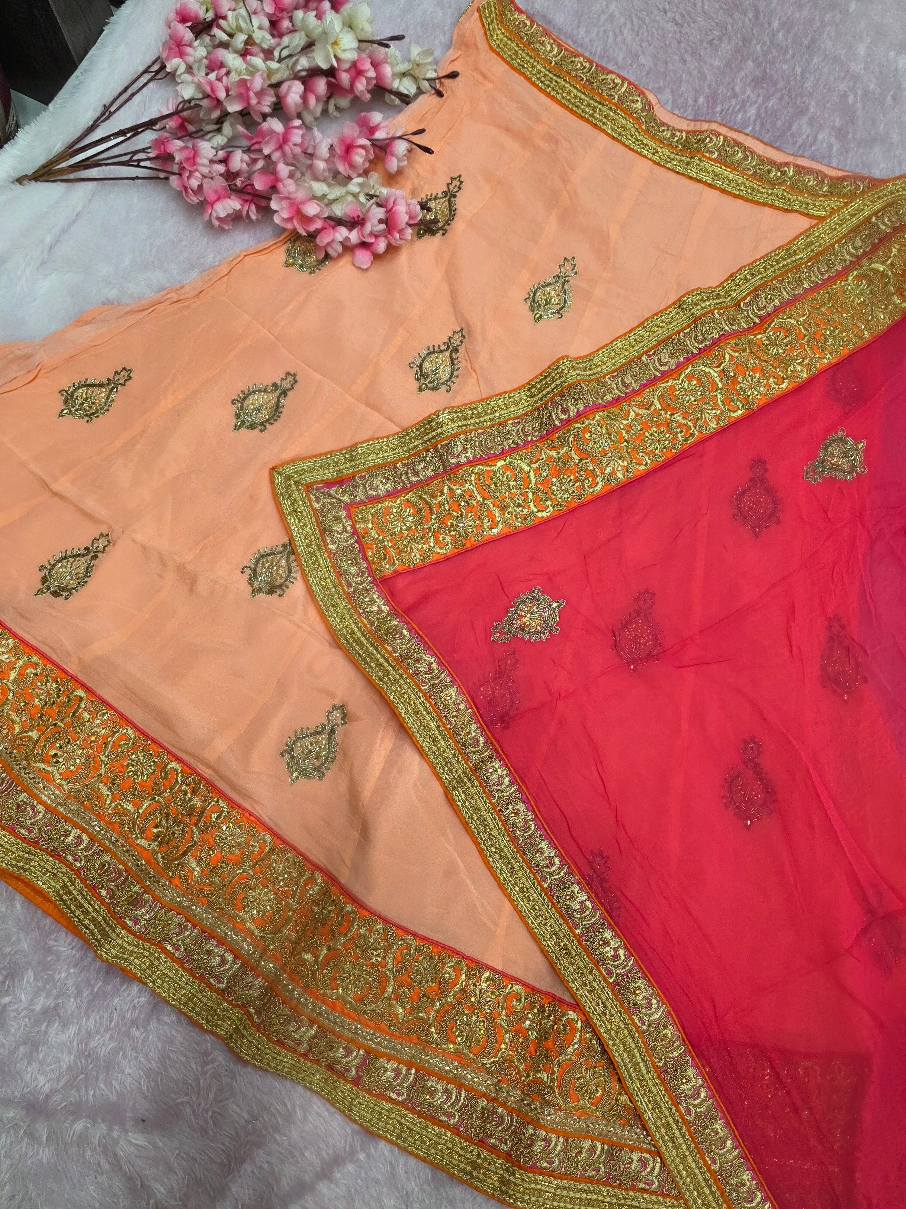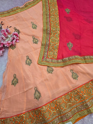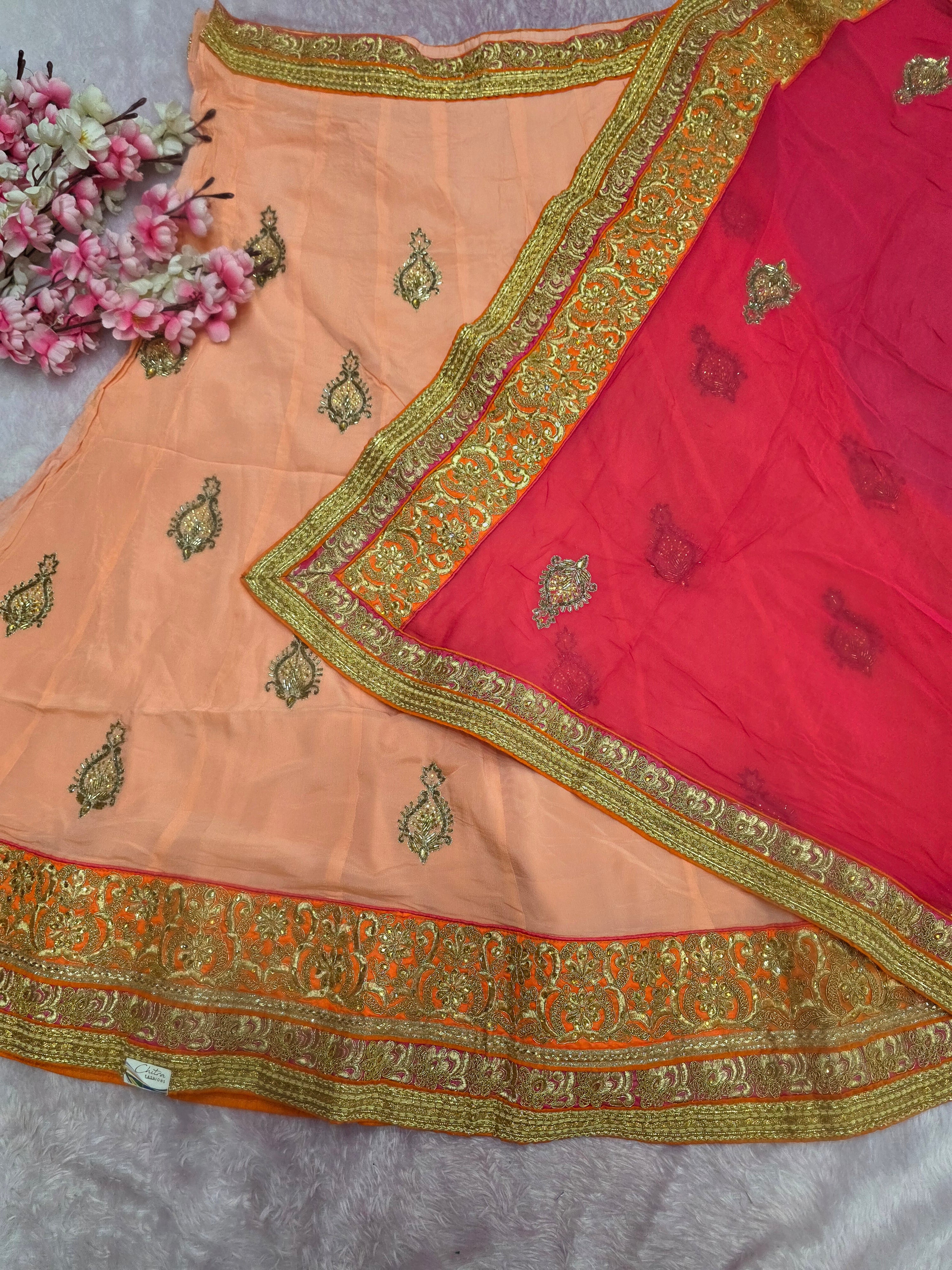 978001 Rajasthani Traditional Lehenga with Chinon Dupatta - Peach