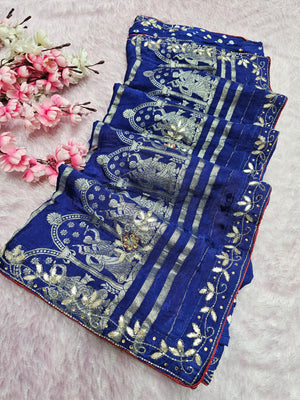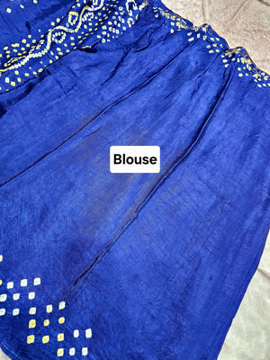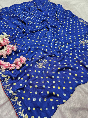 987008 Traditional Modal Gajji Silk Hand Bandhani Saree with Hand Gota Patti Work - Blue