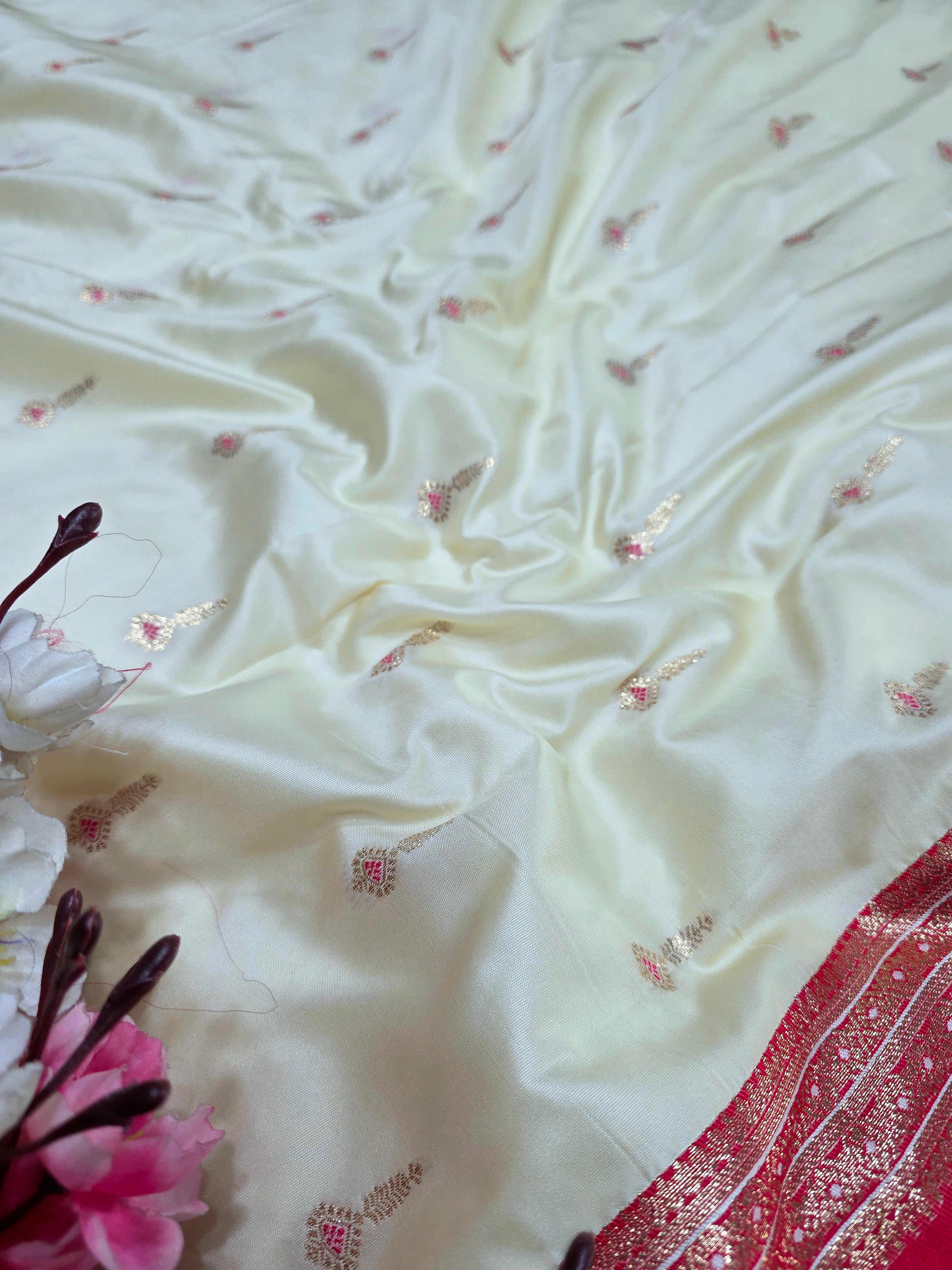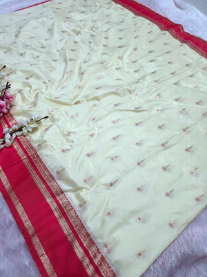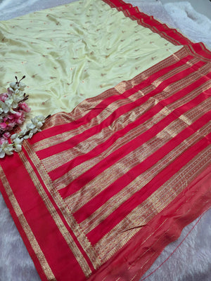 992005 Banarasi Soft Silk Saree with Small Buti - Red White