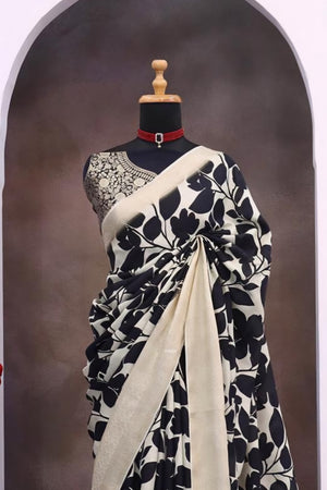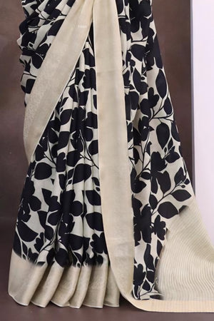 996001 Beautiful Pure Maslin Silk Traditional Print Saree with Zari Weaving Border and Heavy Brocket Blouse