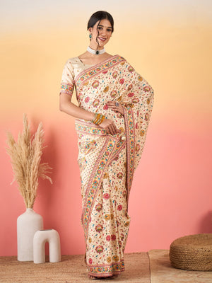 997001 Unique Kashmiri Work Pure Natural Viscos Silk Saree