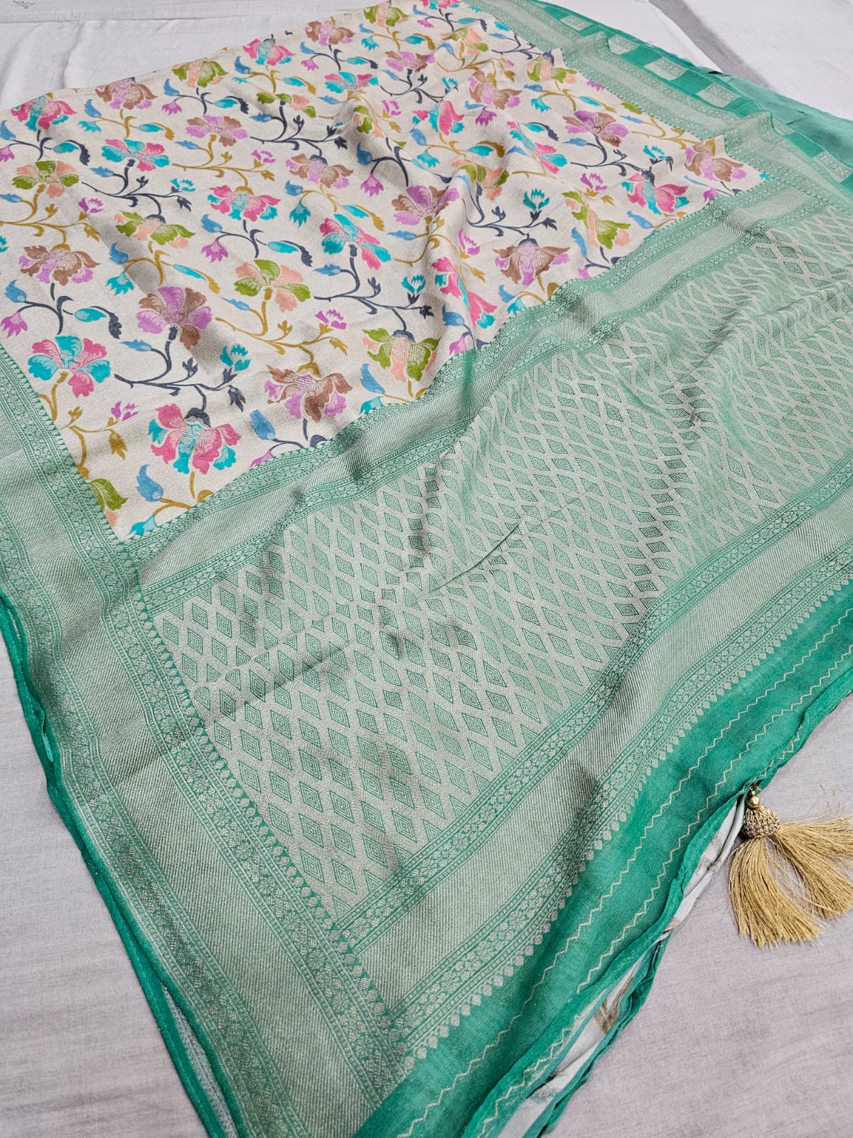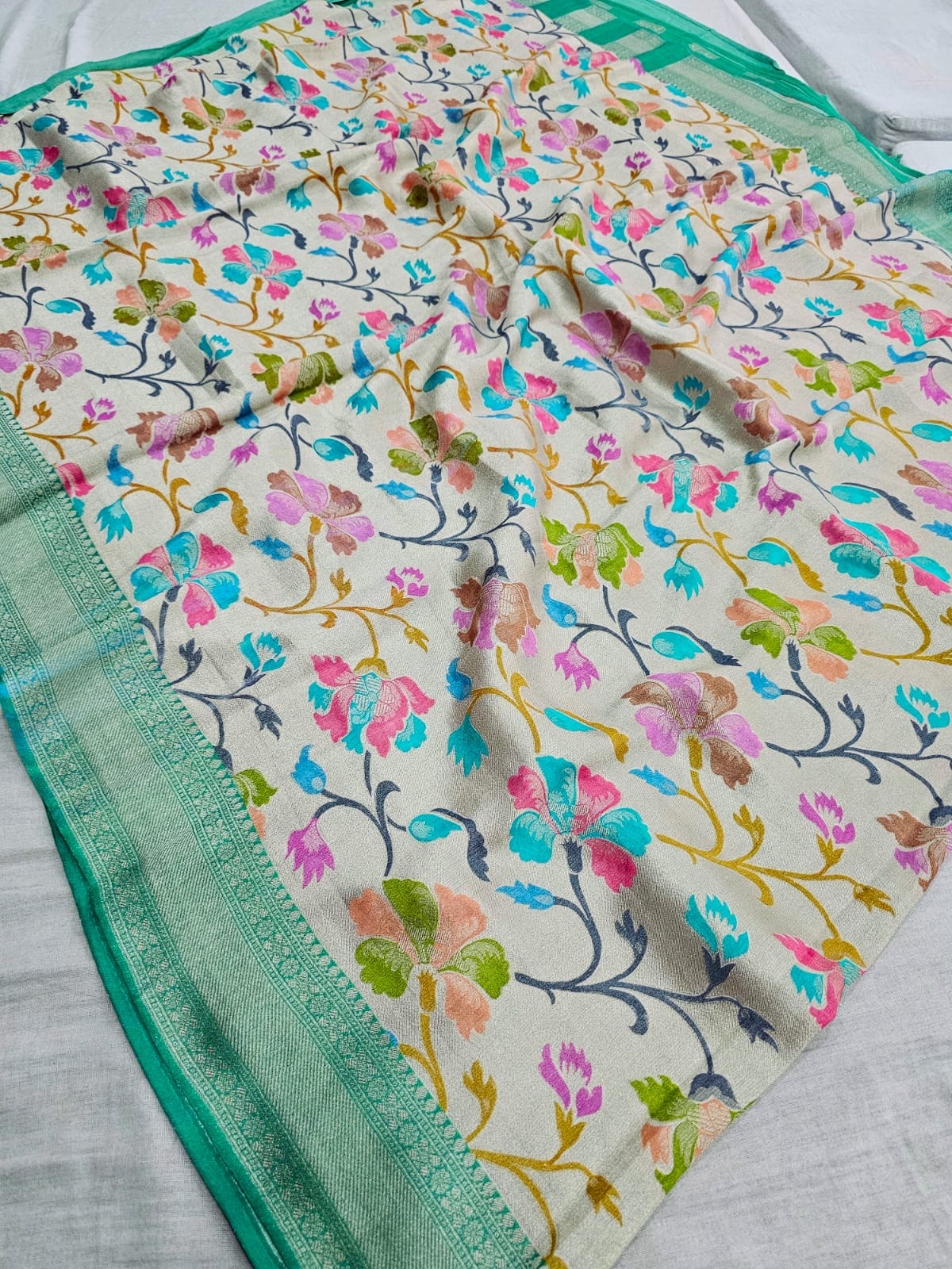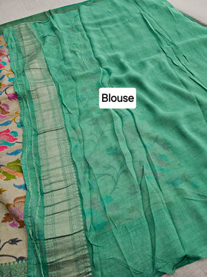 C66003 PURE GEORGATTE SAREE WITH SILVER ZARI AND RESAM WEAVING - Green