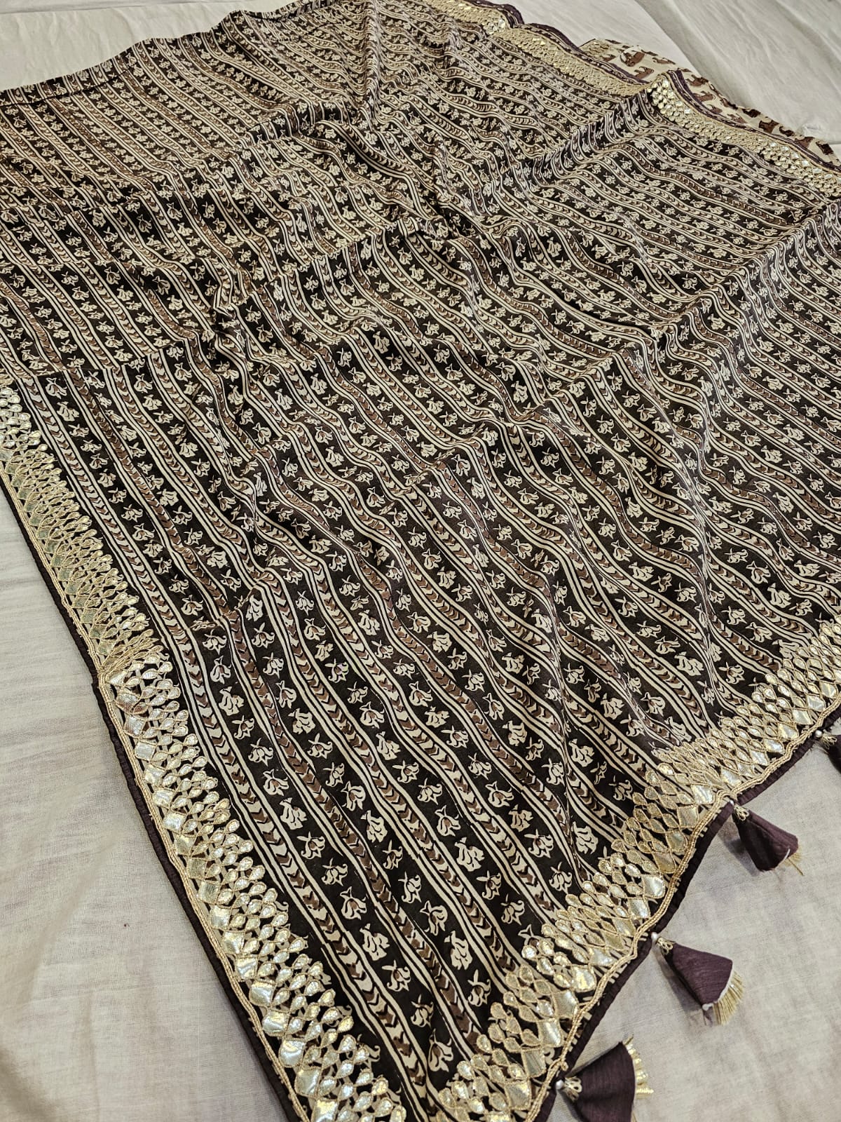 C72003 Exclusive Handmade Print Saree with Hand Gotapatti Work 147003