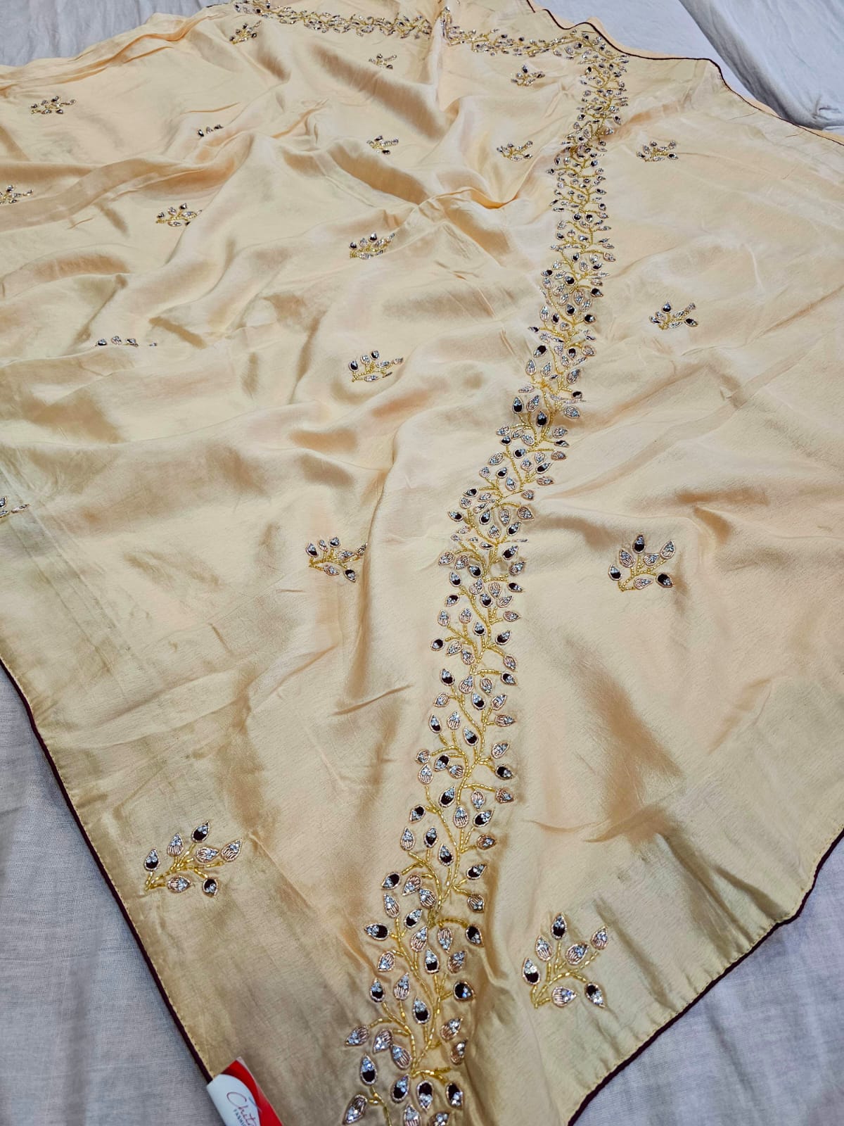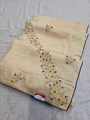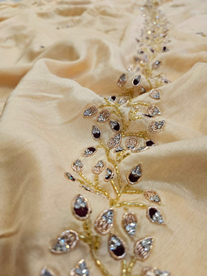 C74003 Elegant Pure Russian Silk Saree Hand Embroidered with Diamond and Cutdana