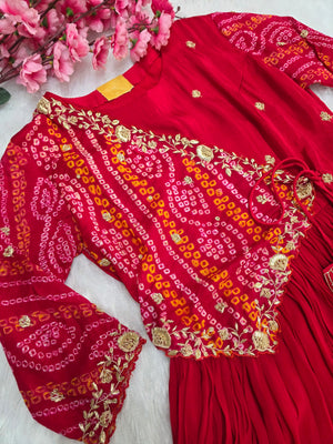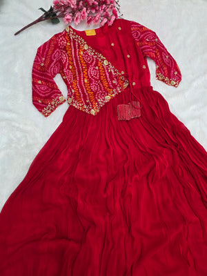 C77004 Premium Pure Georgette Designer Bandhani Gown With Zardosi Work