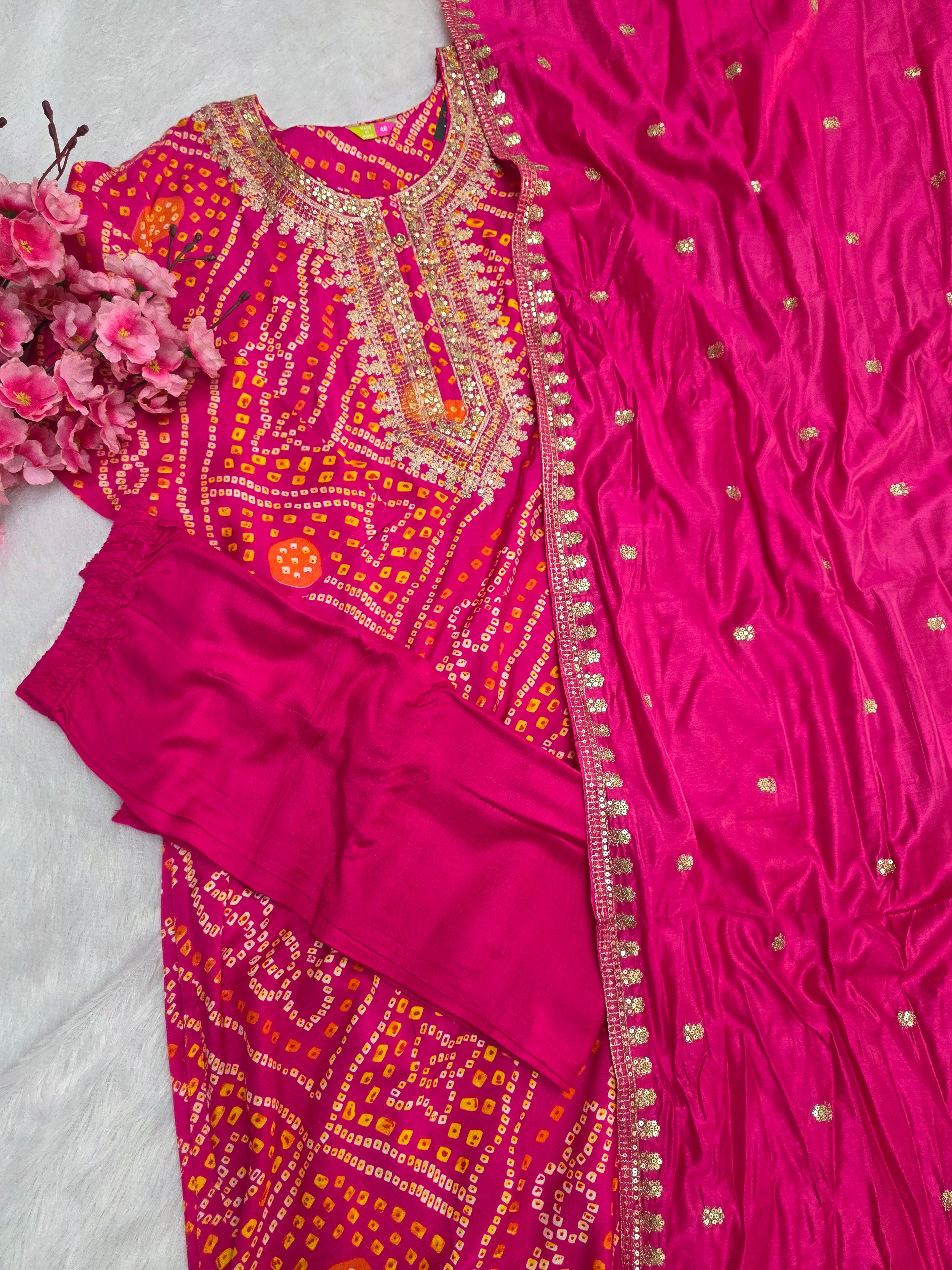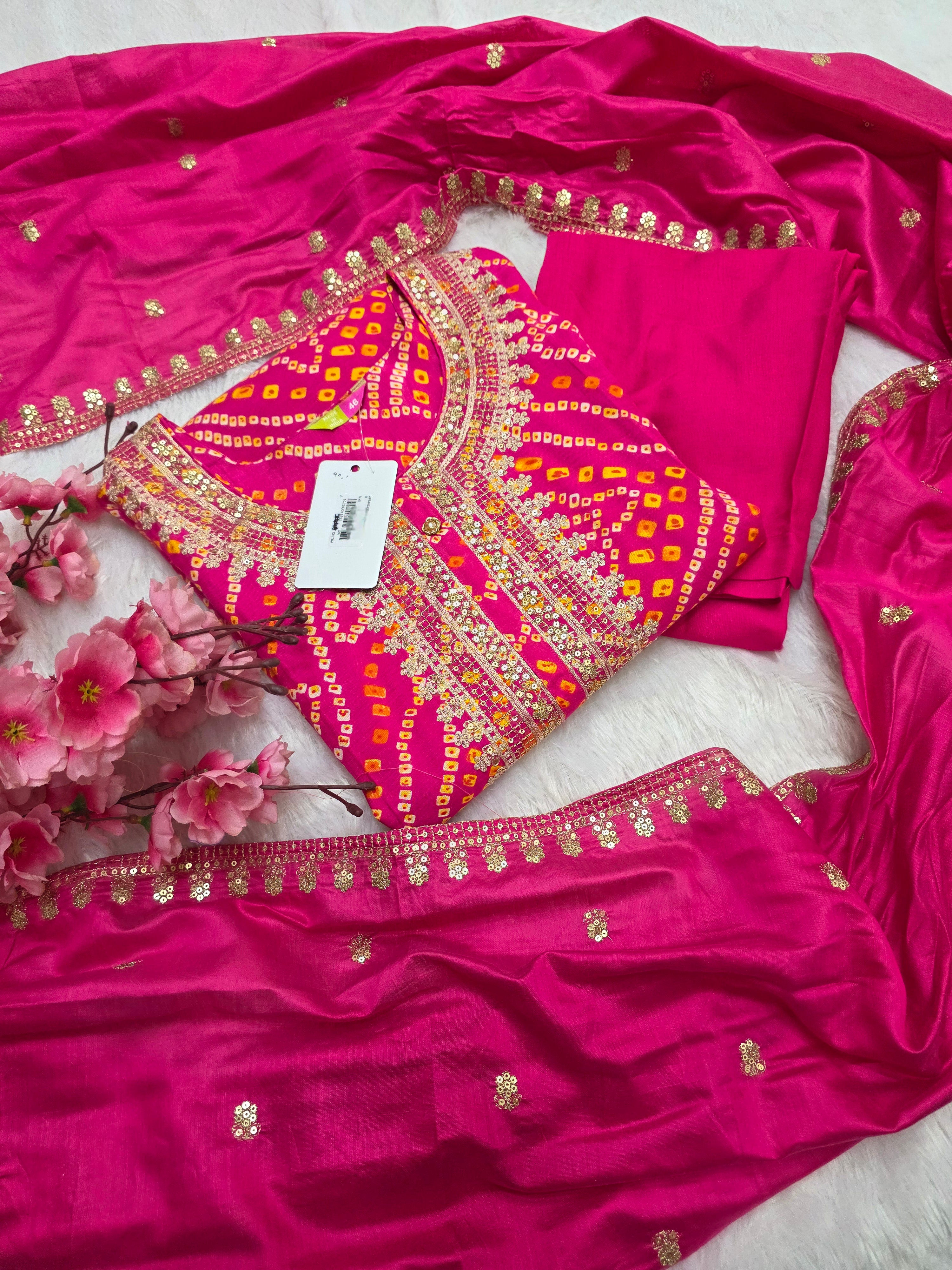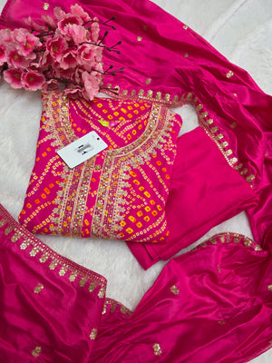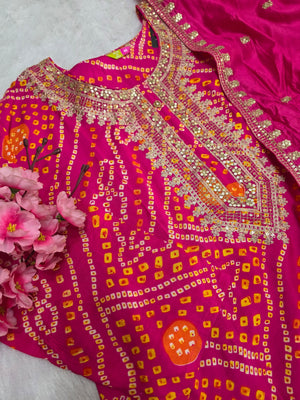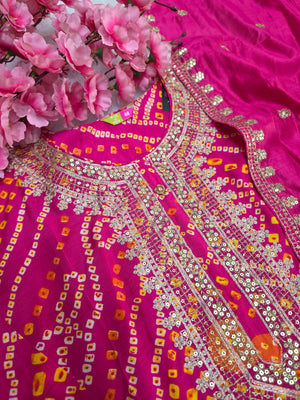 - Highlight : Bandhani Print Party Wear Dress with Sequence Work