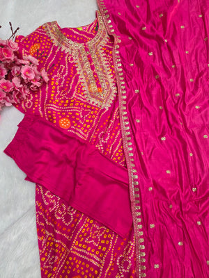 889001 Bandhani Print Party Wear Dress with Sequence Work C77012